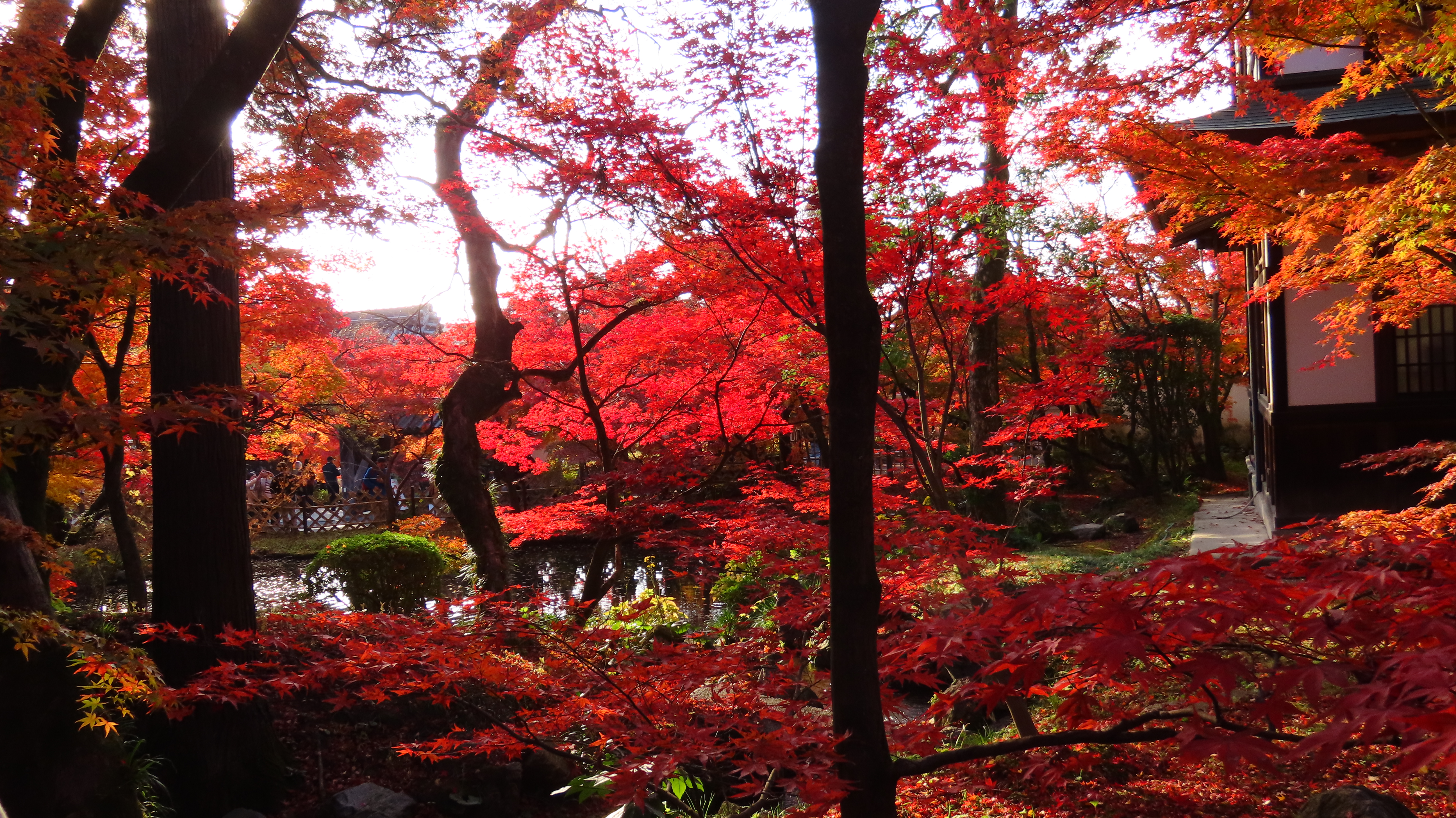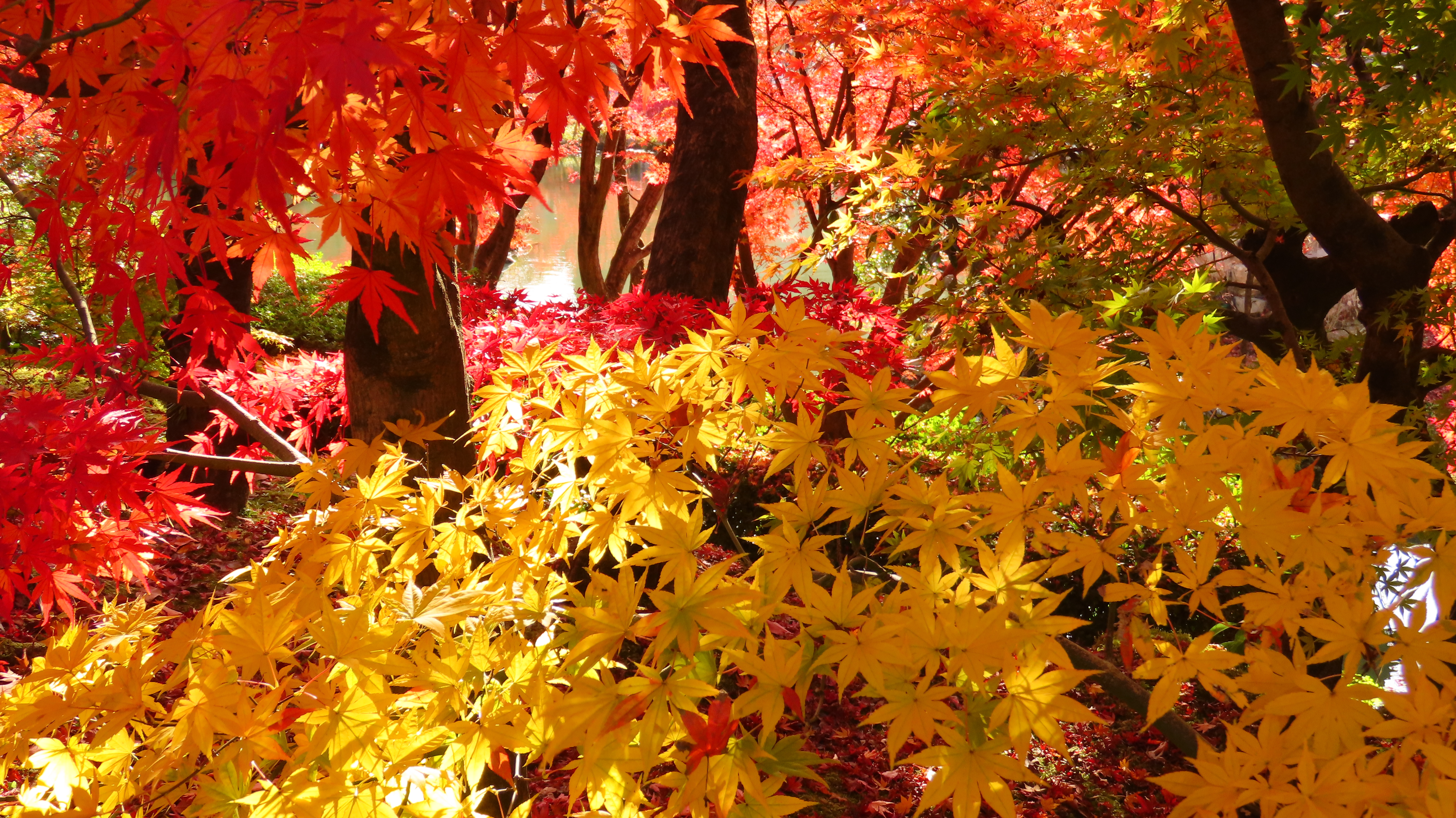3000本のイロハモミジ オオモミジが庭園を彩り飽きさせない風景が続く