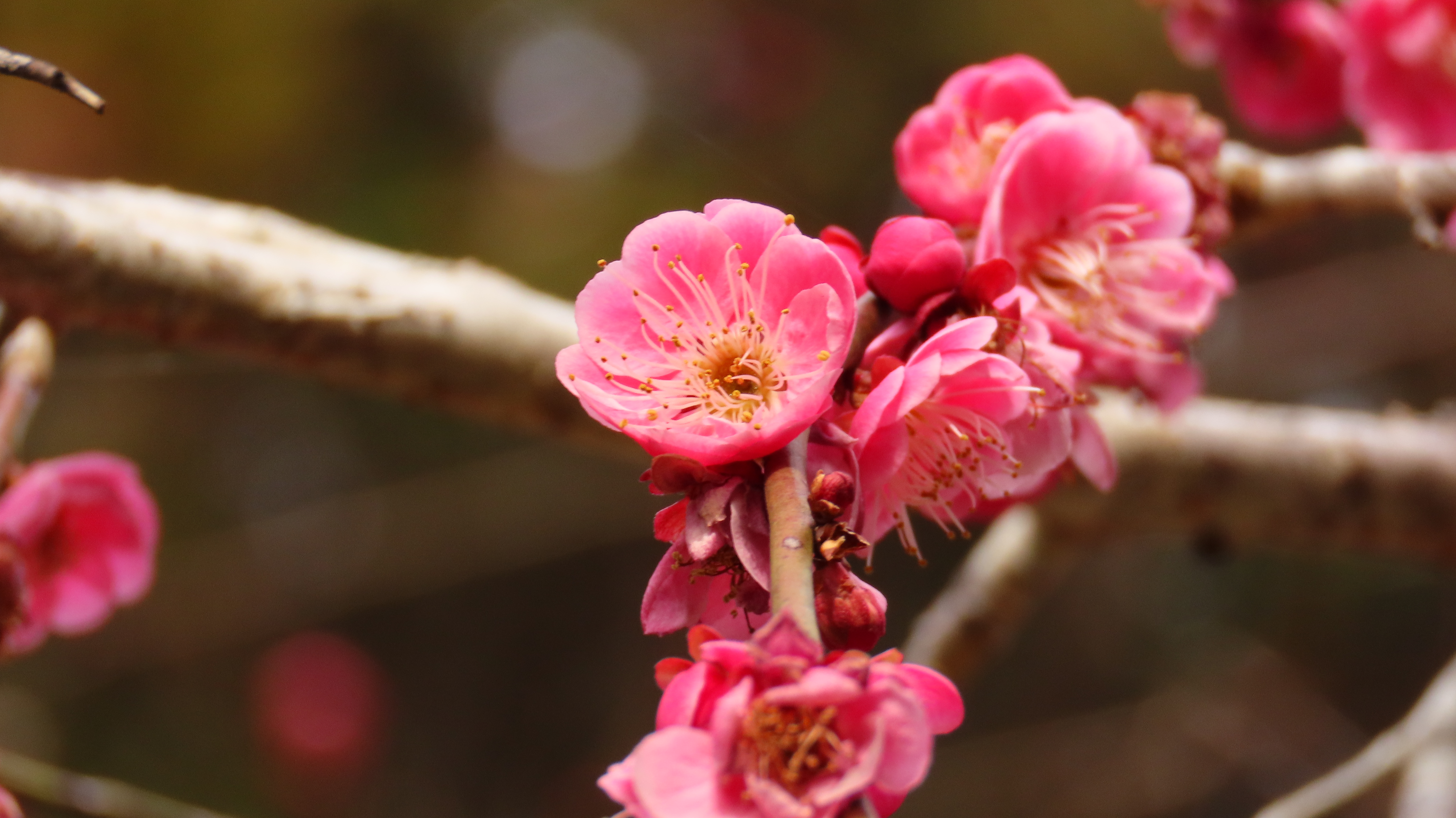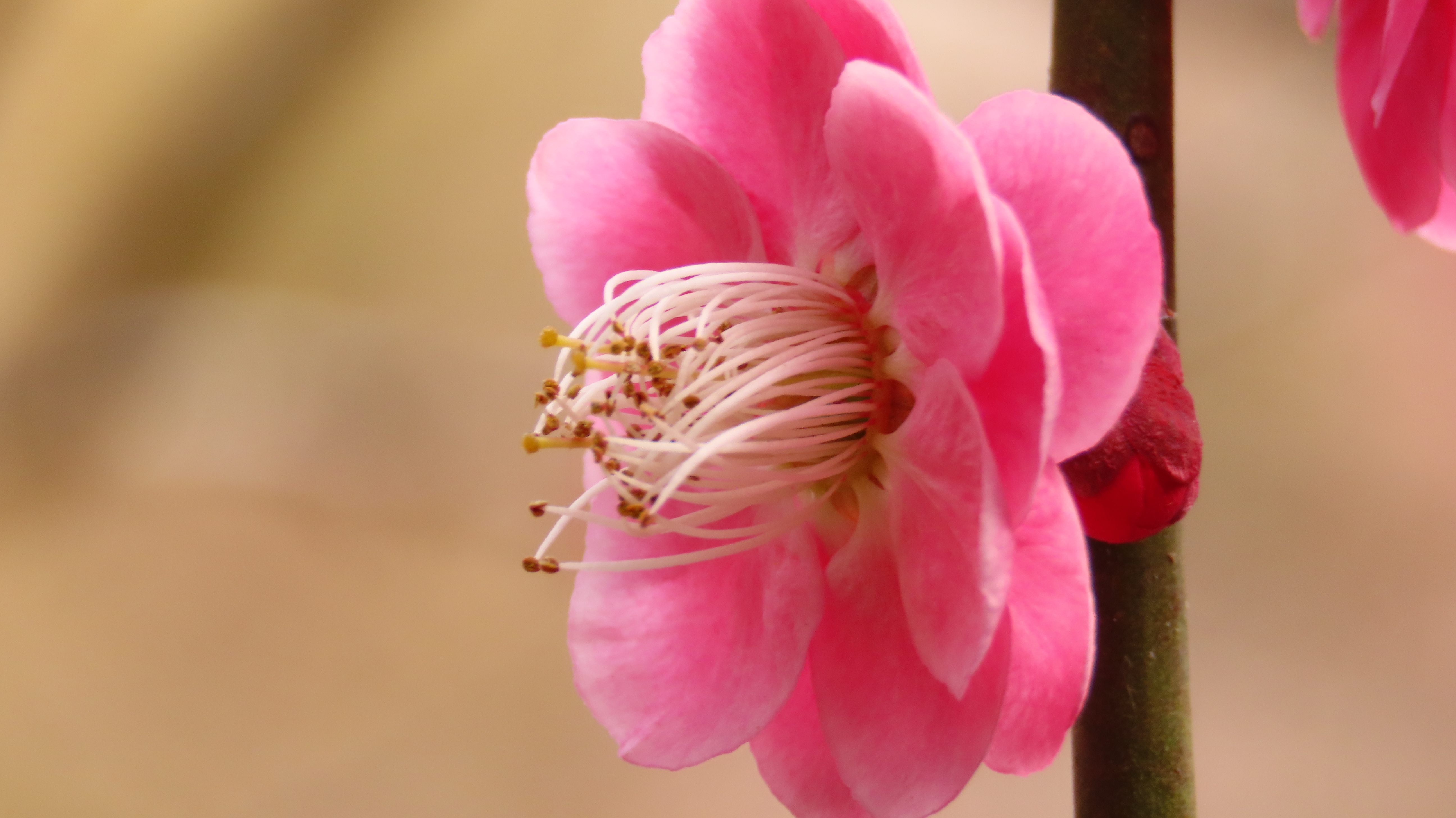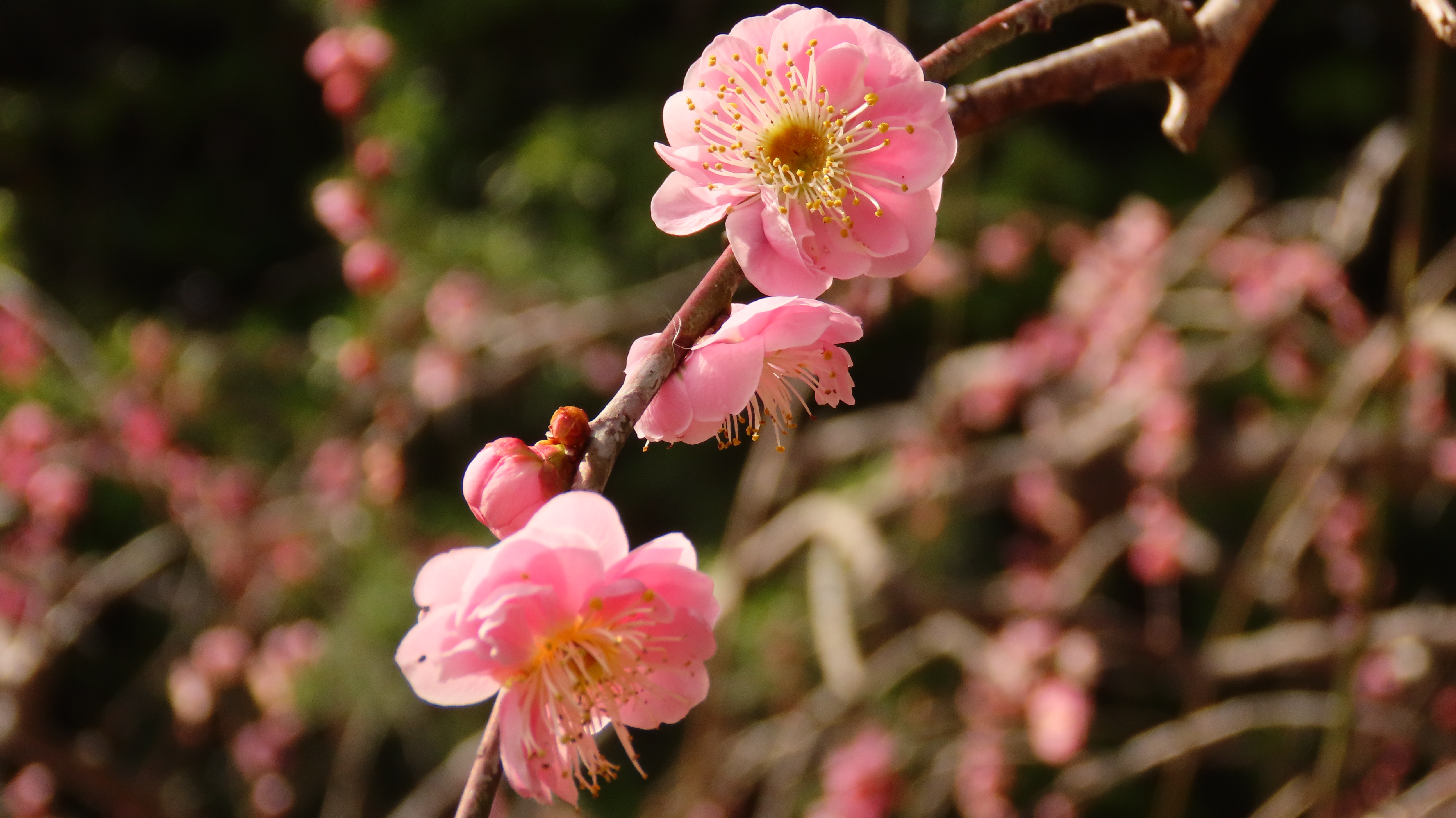 紅梅のしだれ梅は満開で見頃真っ最中