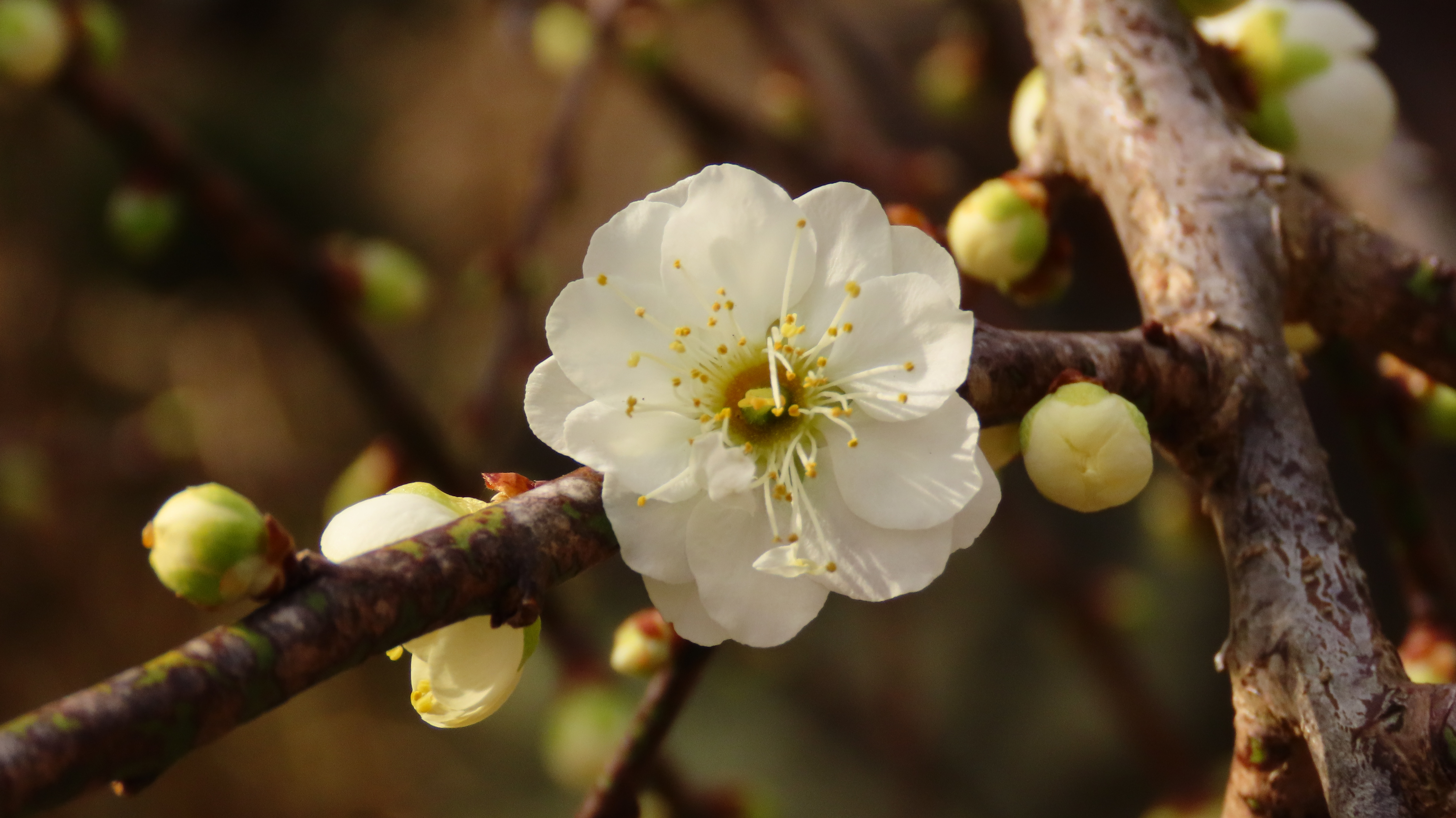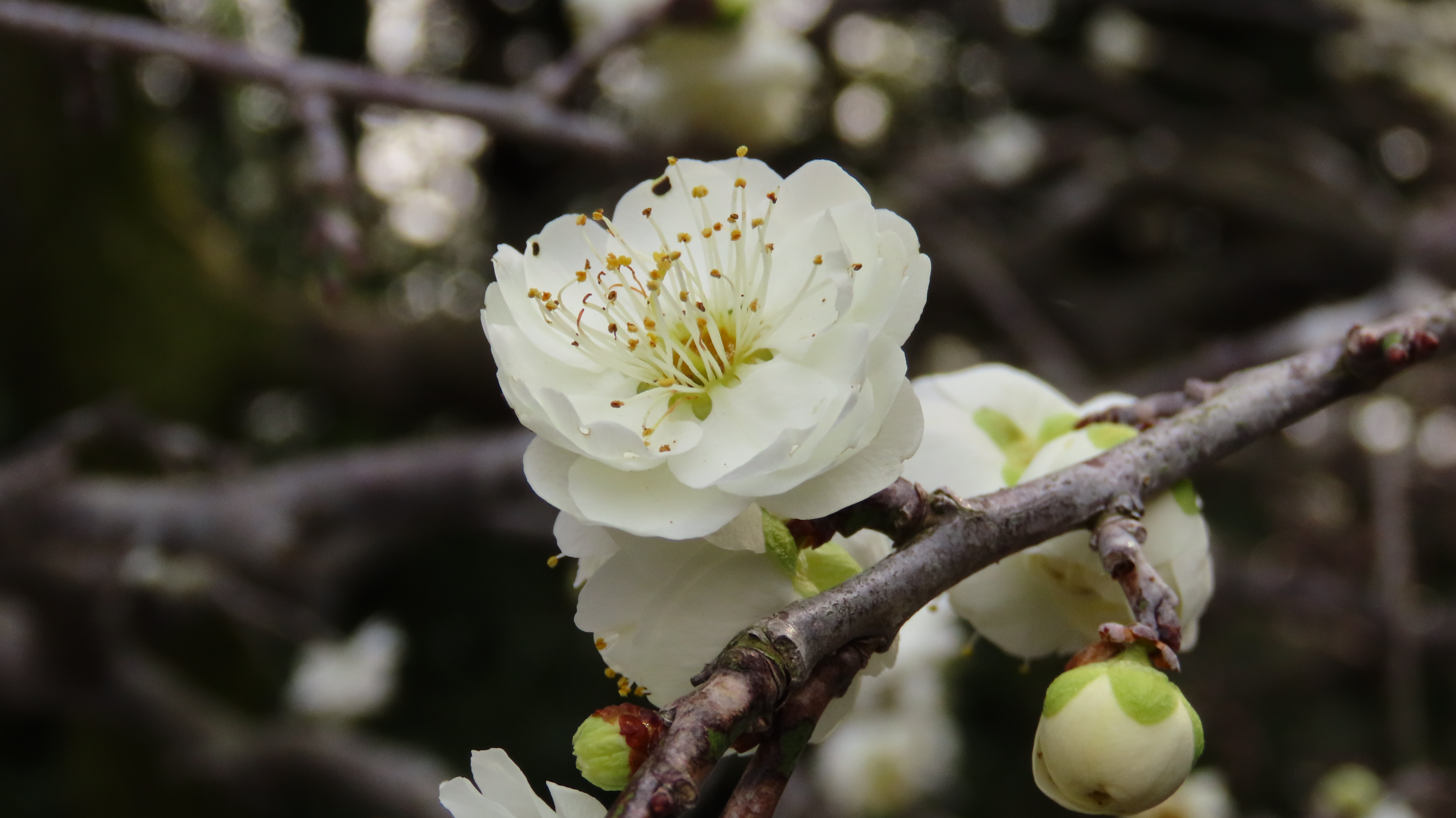 白梅のしだれ梅はまだ蕾が多くこれから見頃を向かえ楽しめそうだ