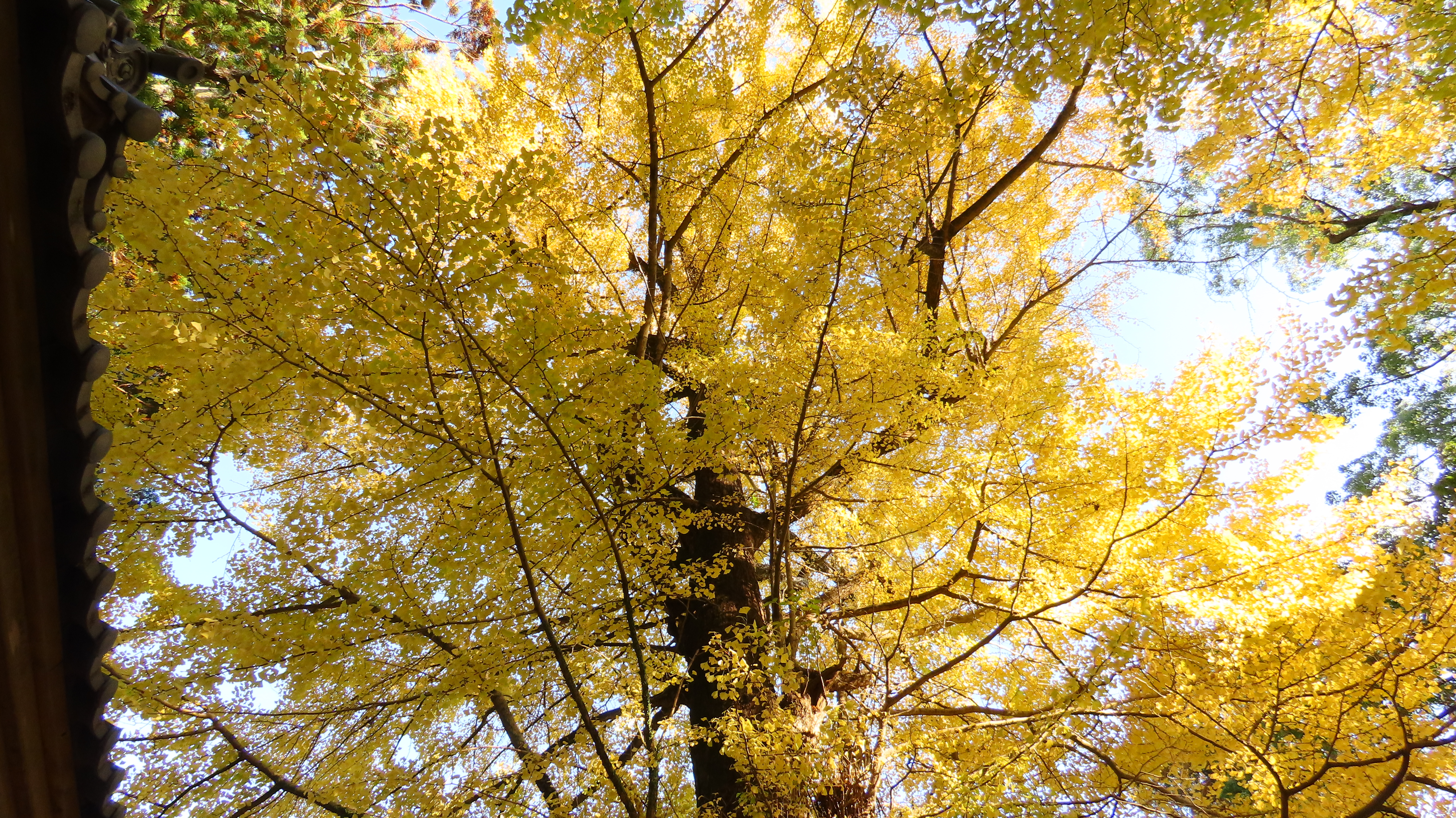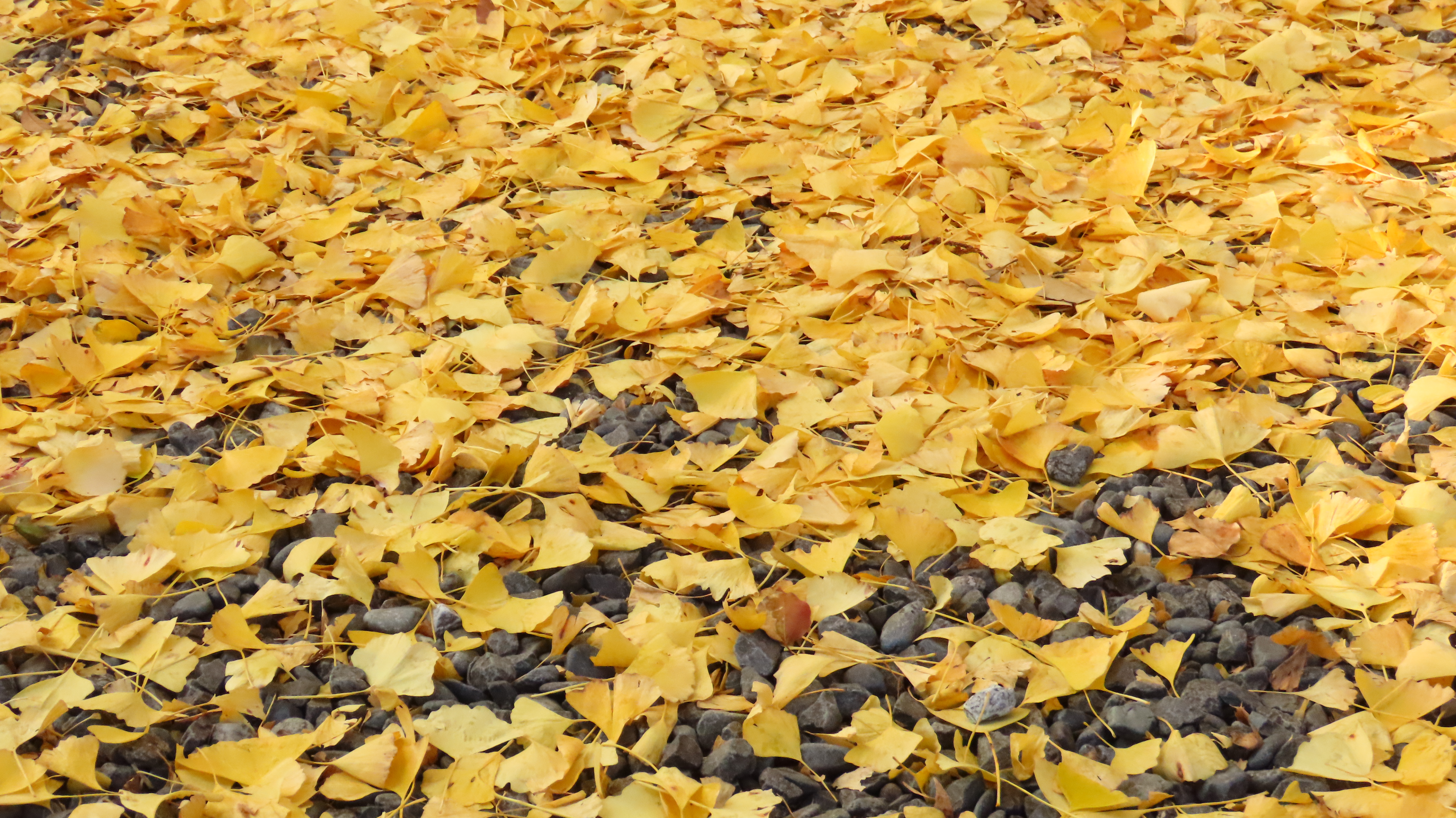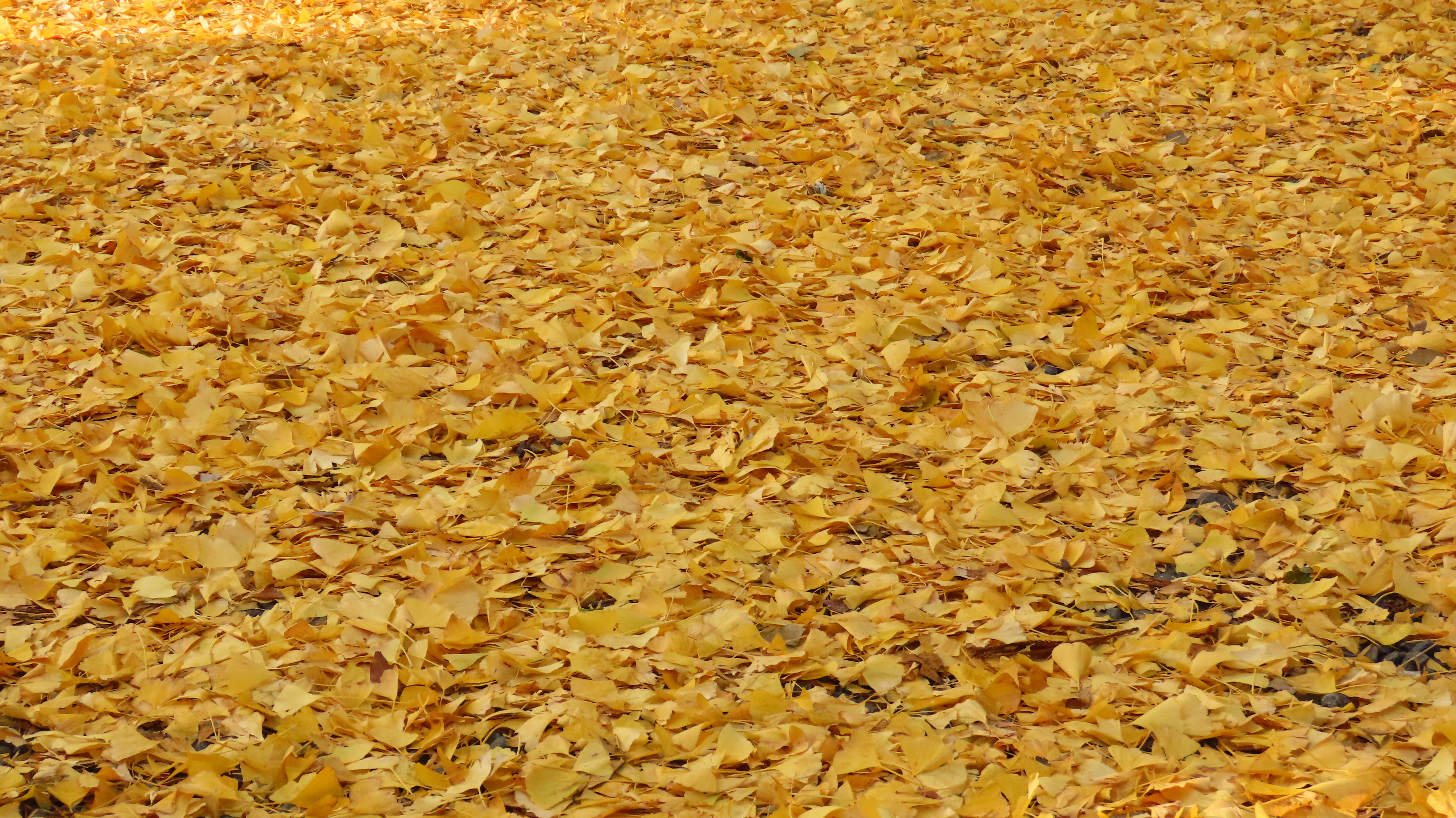 黄色く輝くイチョウの葉と落葉の黄色絨毯がとても綺麗でした