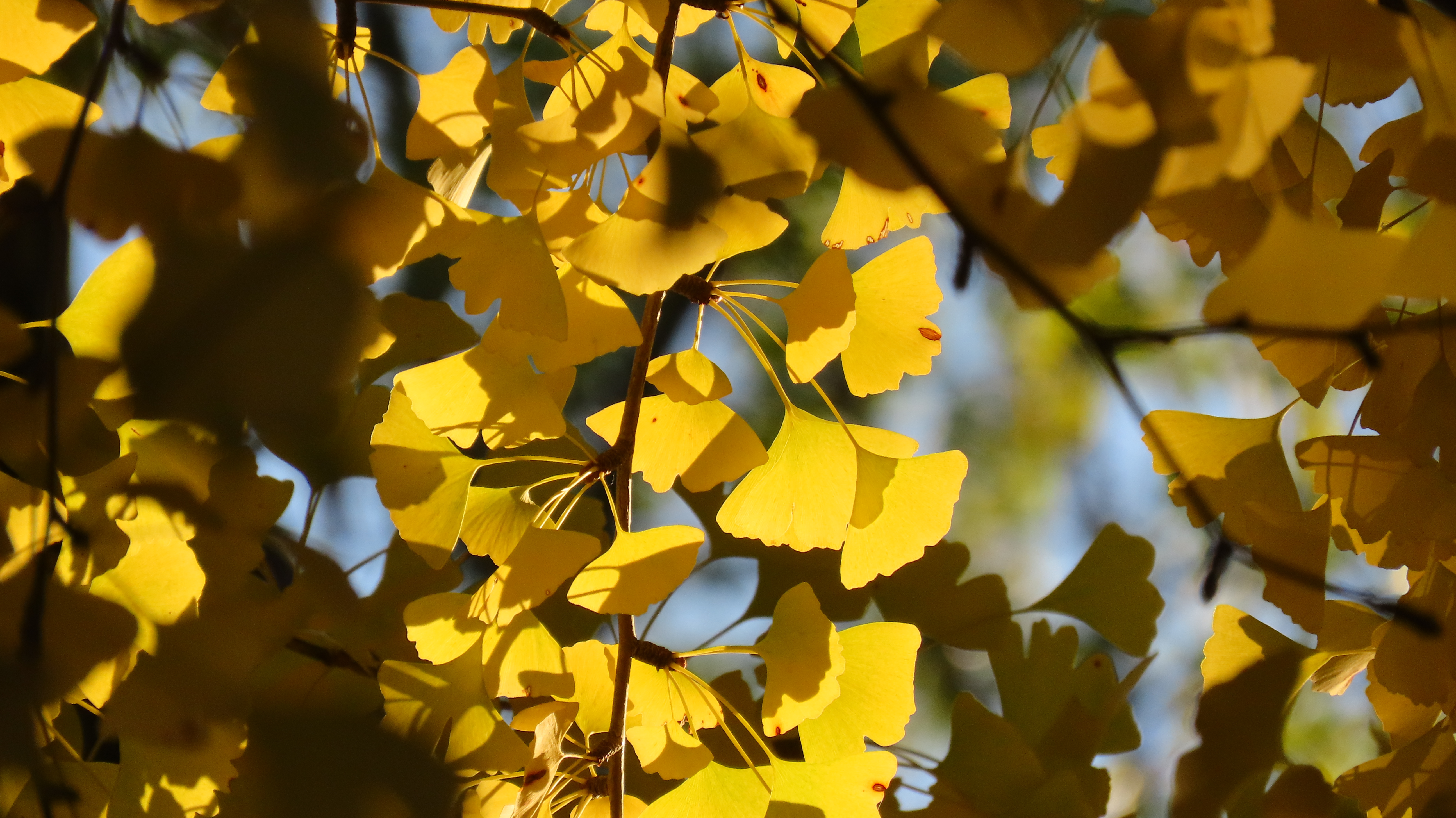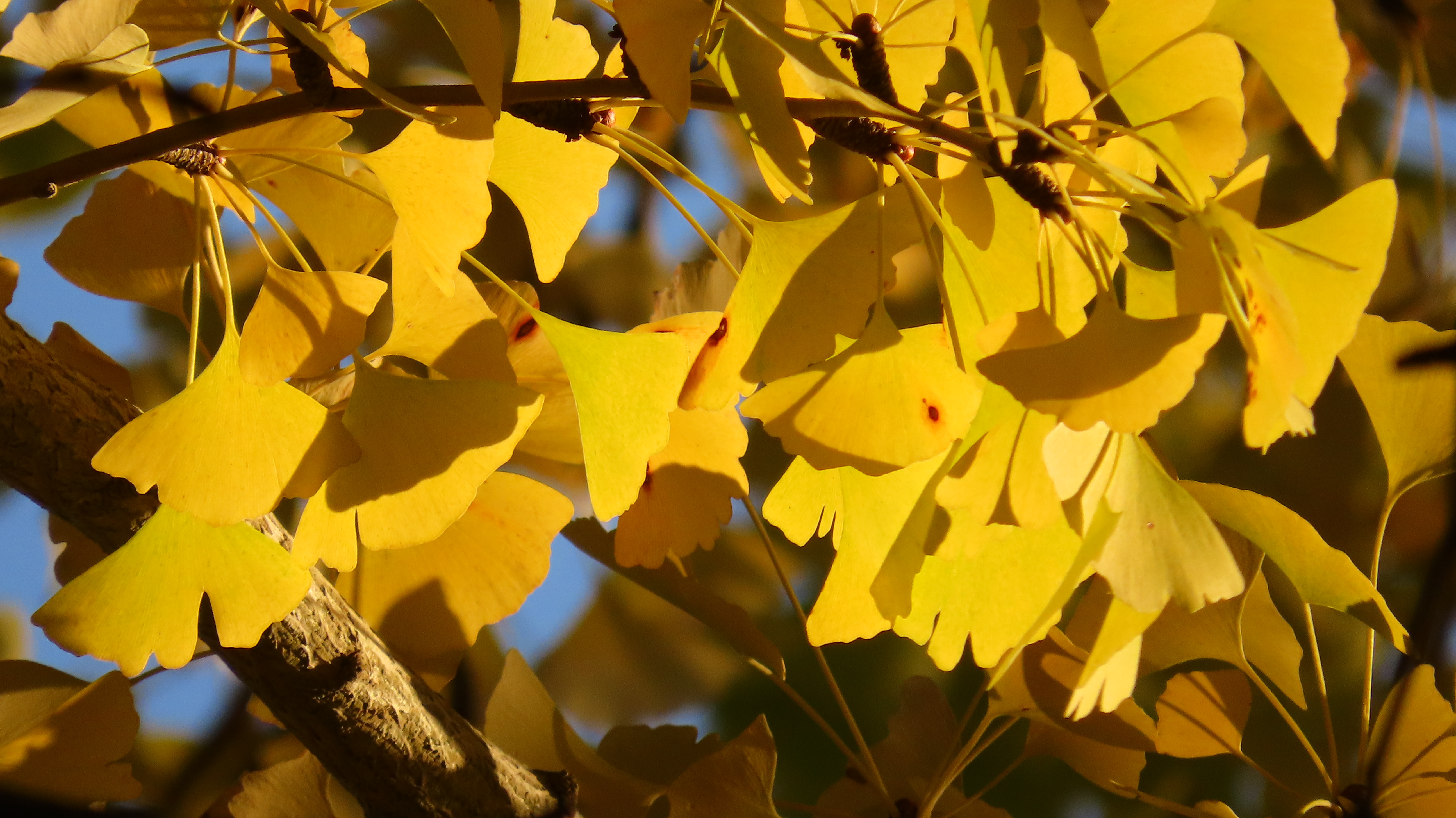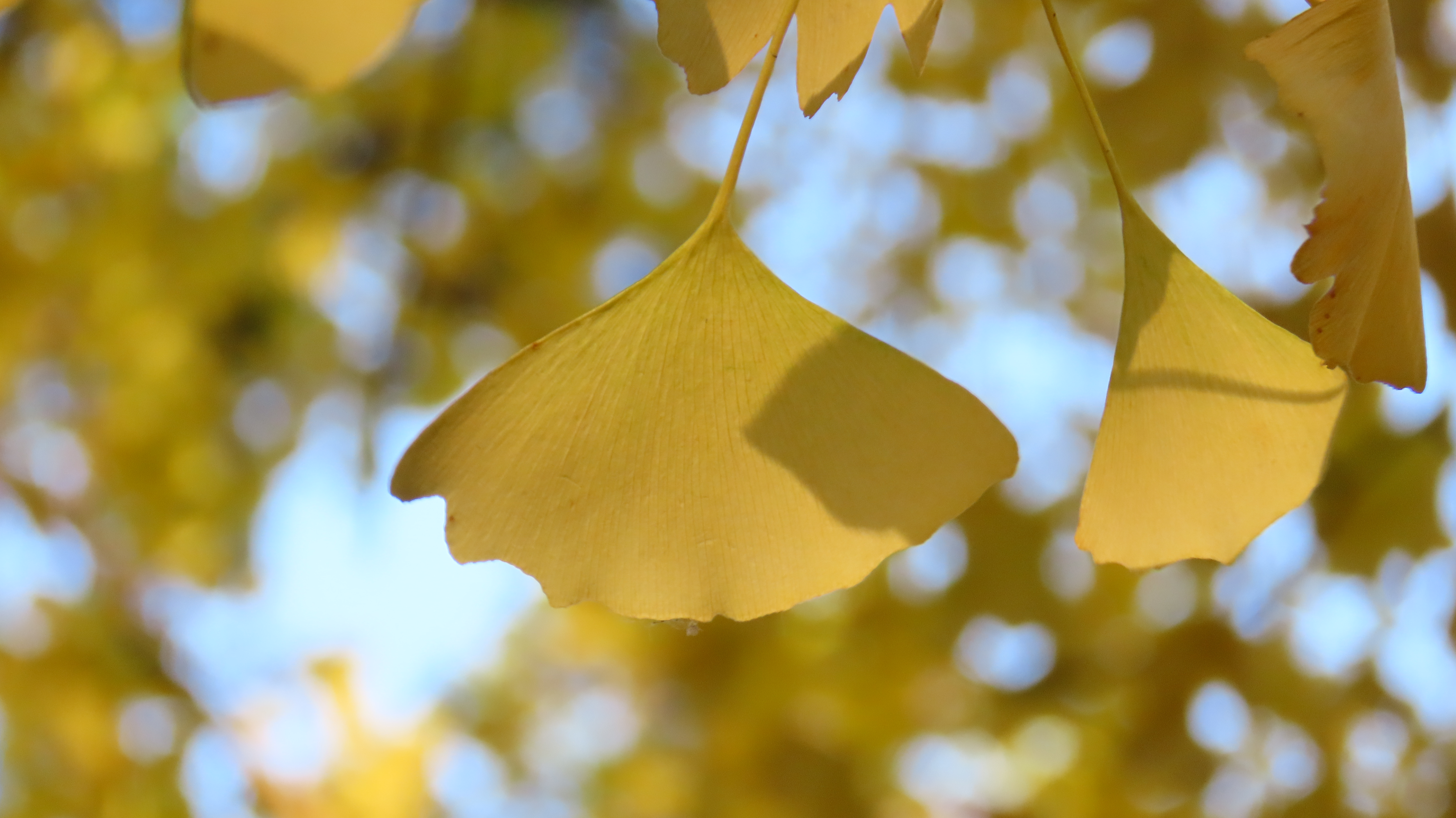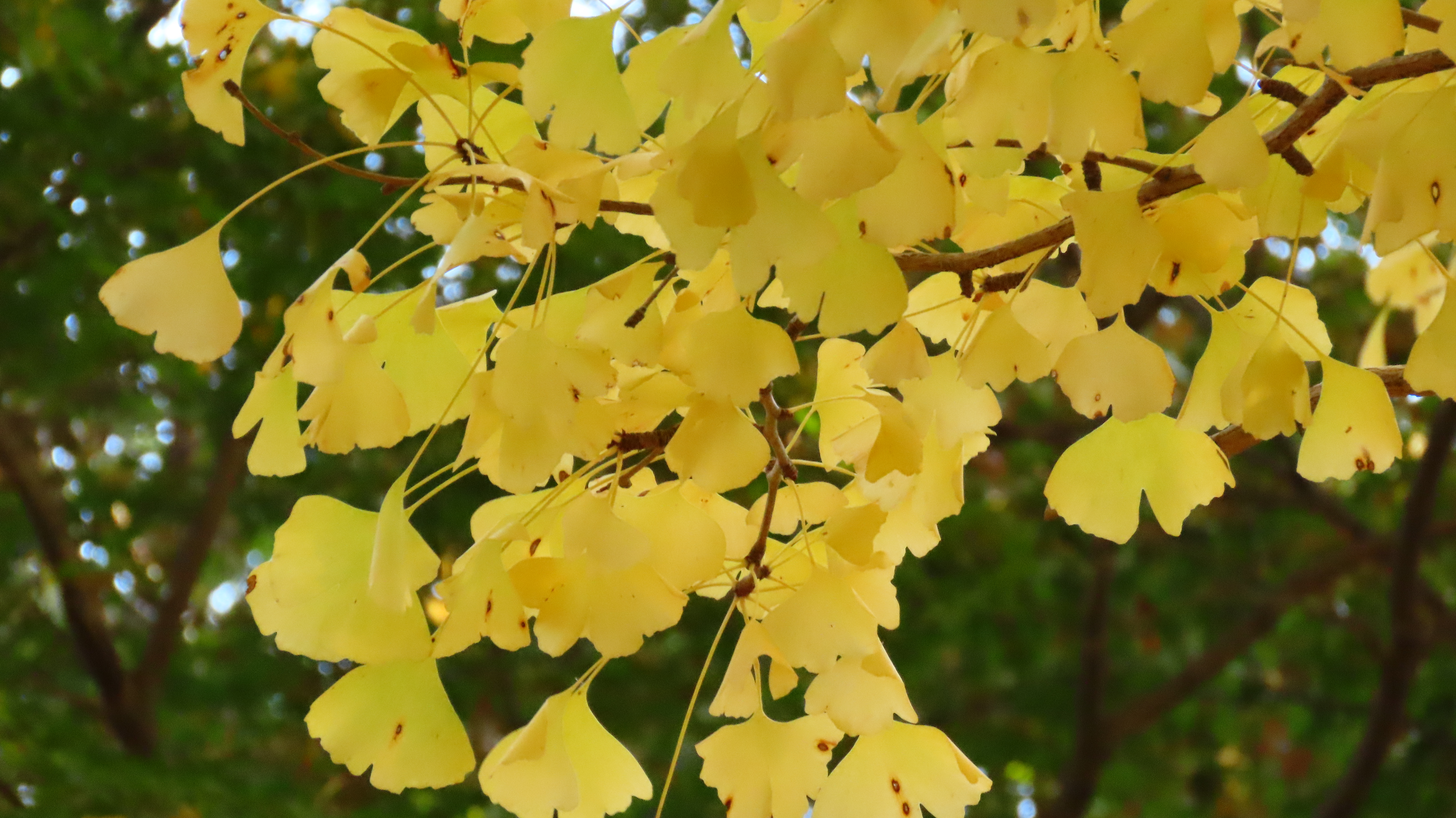 黄色く輝くイチョウの葉と落葉の黄色絨毯がとても綺麗でした