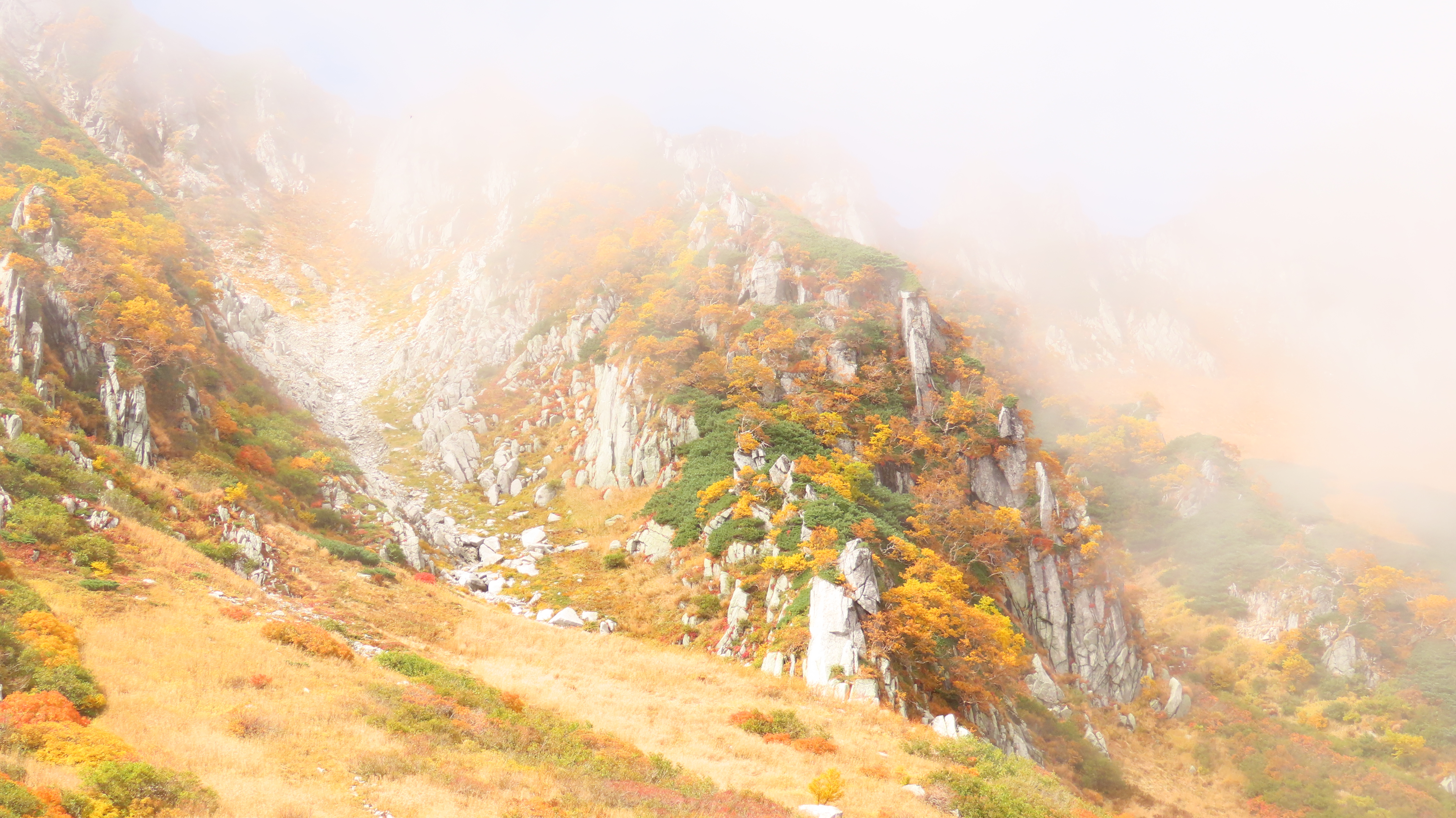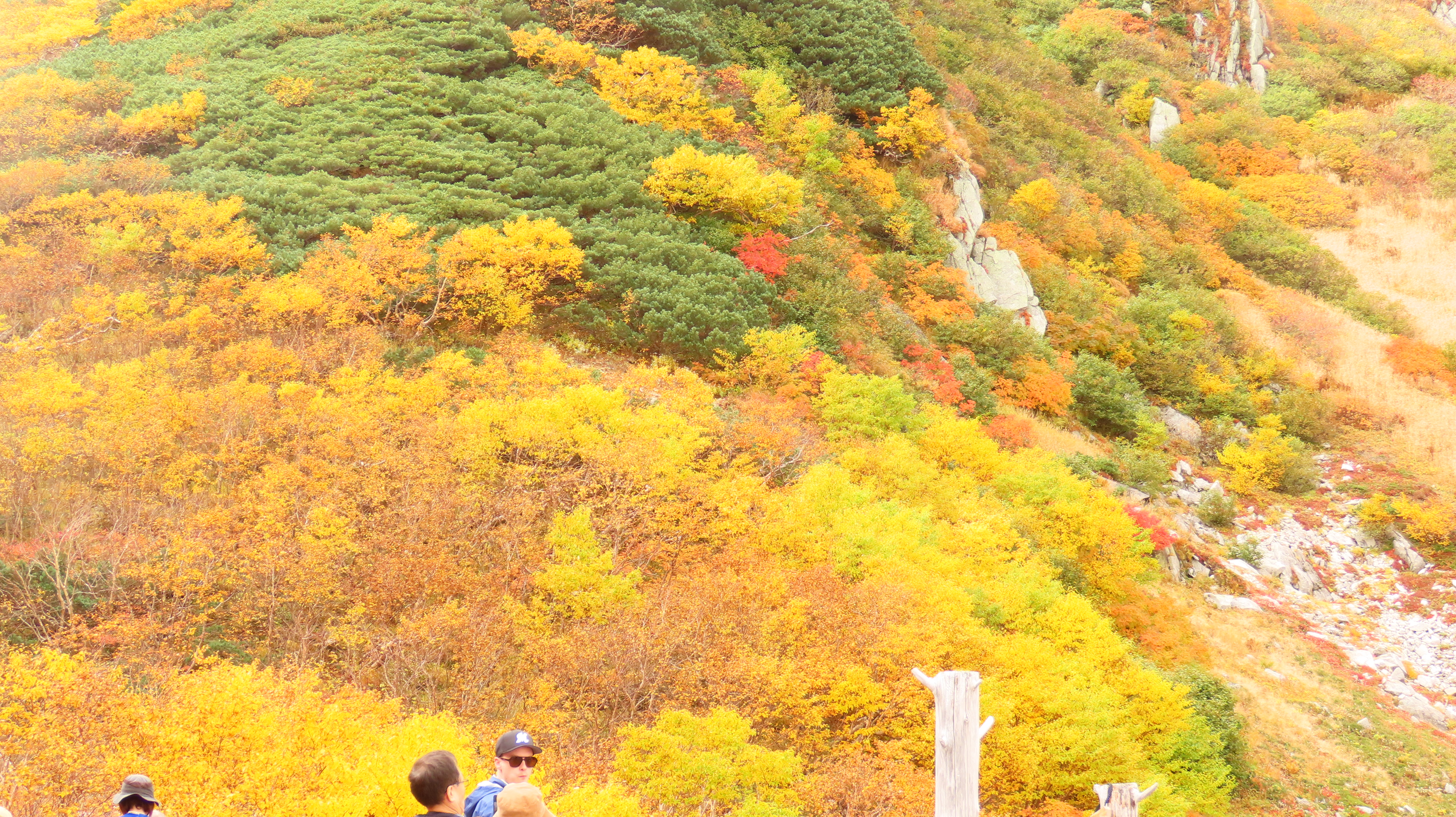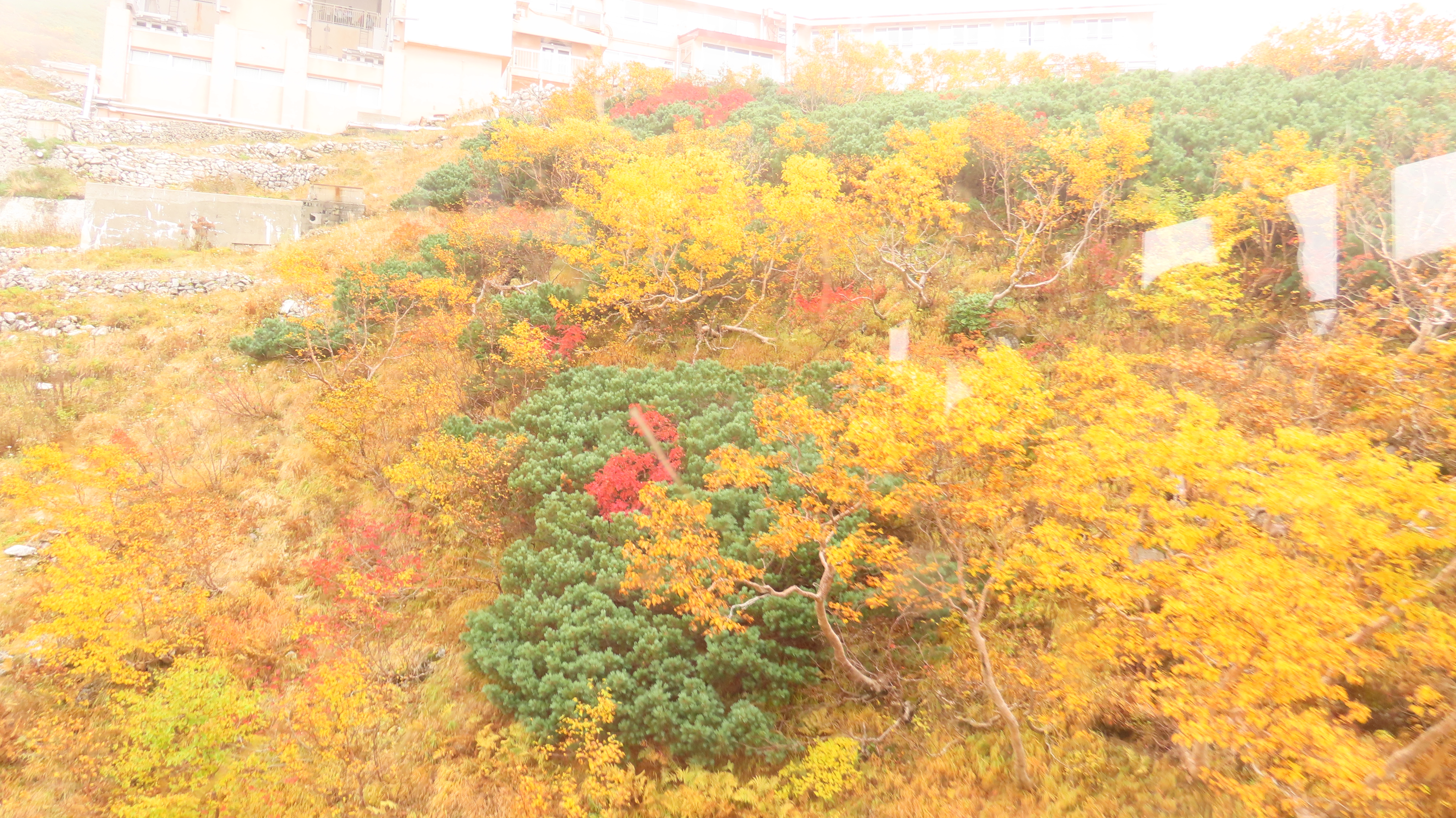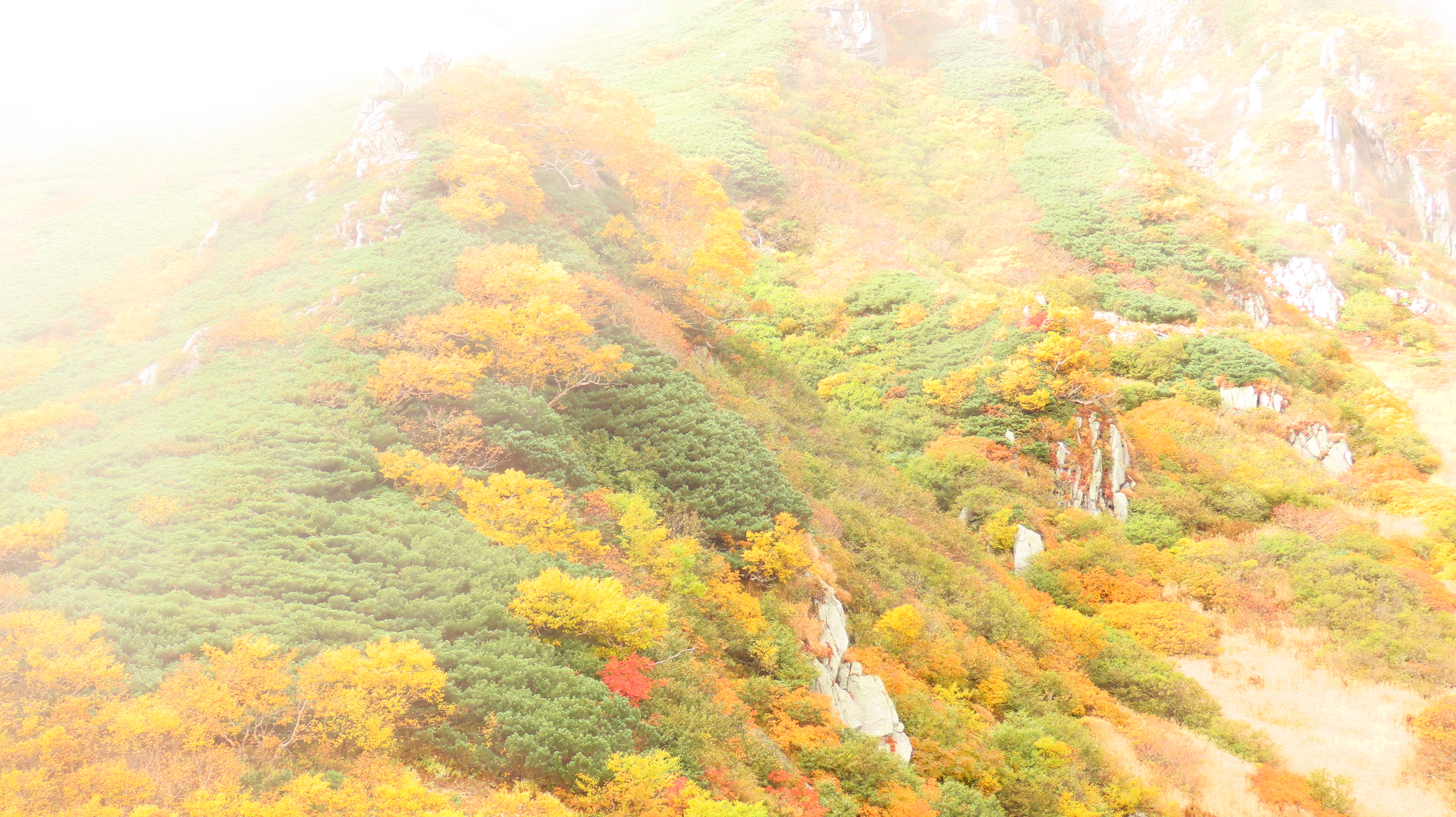天候はガスが発生していましたが、時おりガスもきれて見事な紅葉が楽しめました