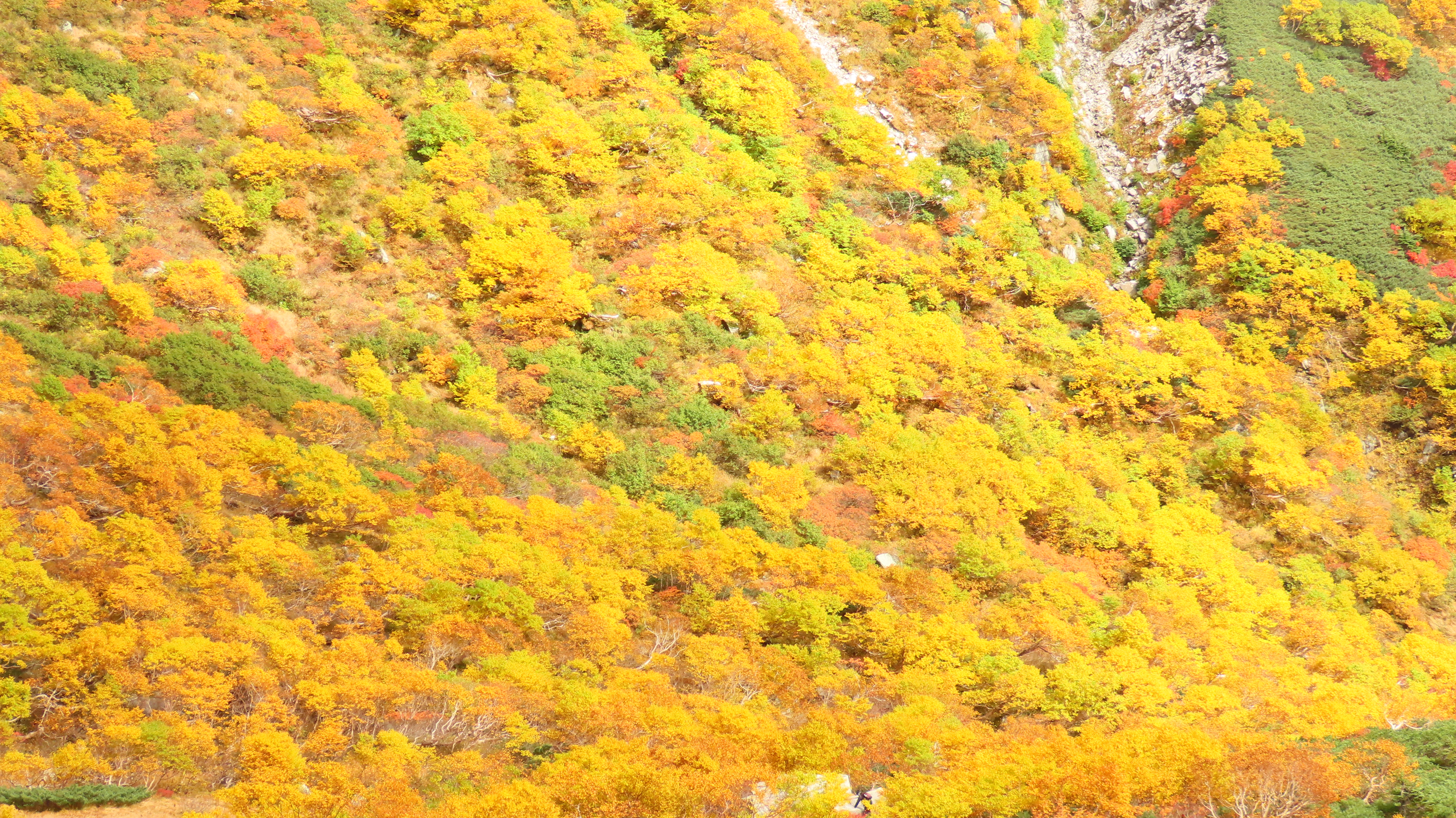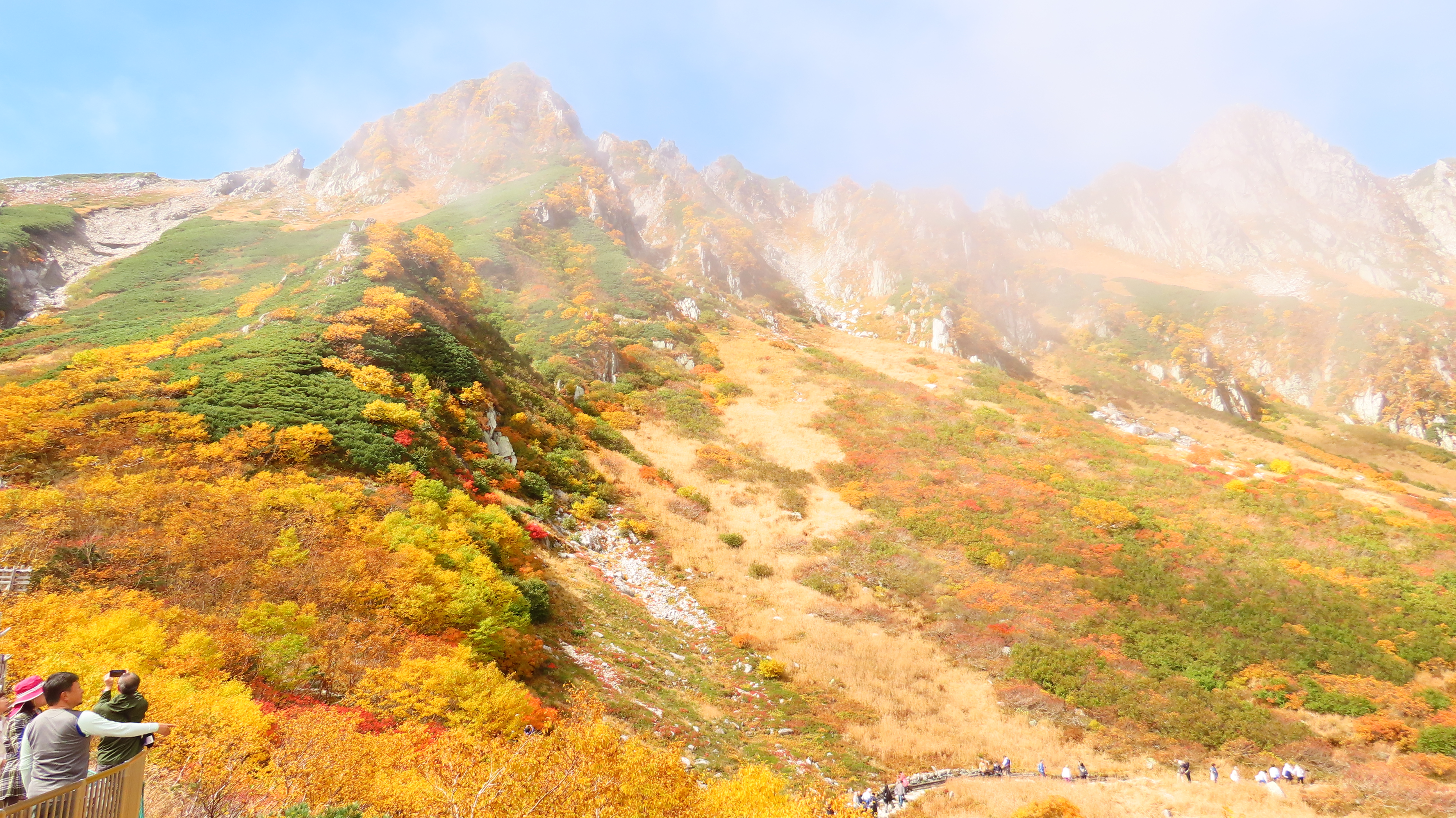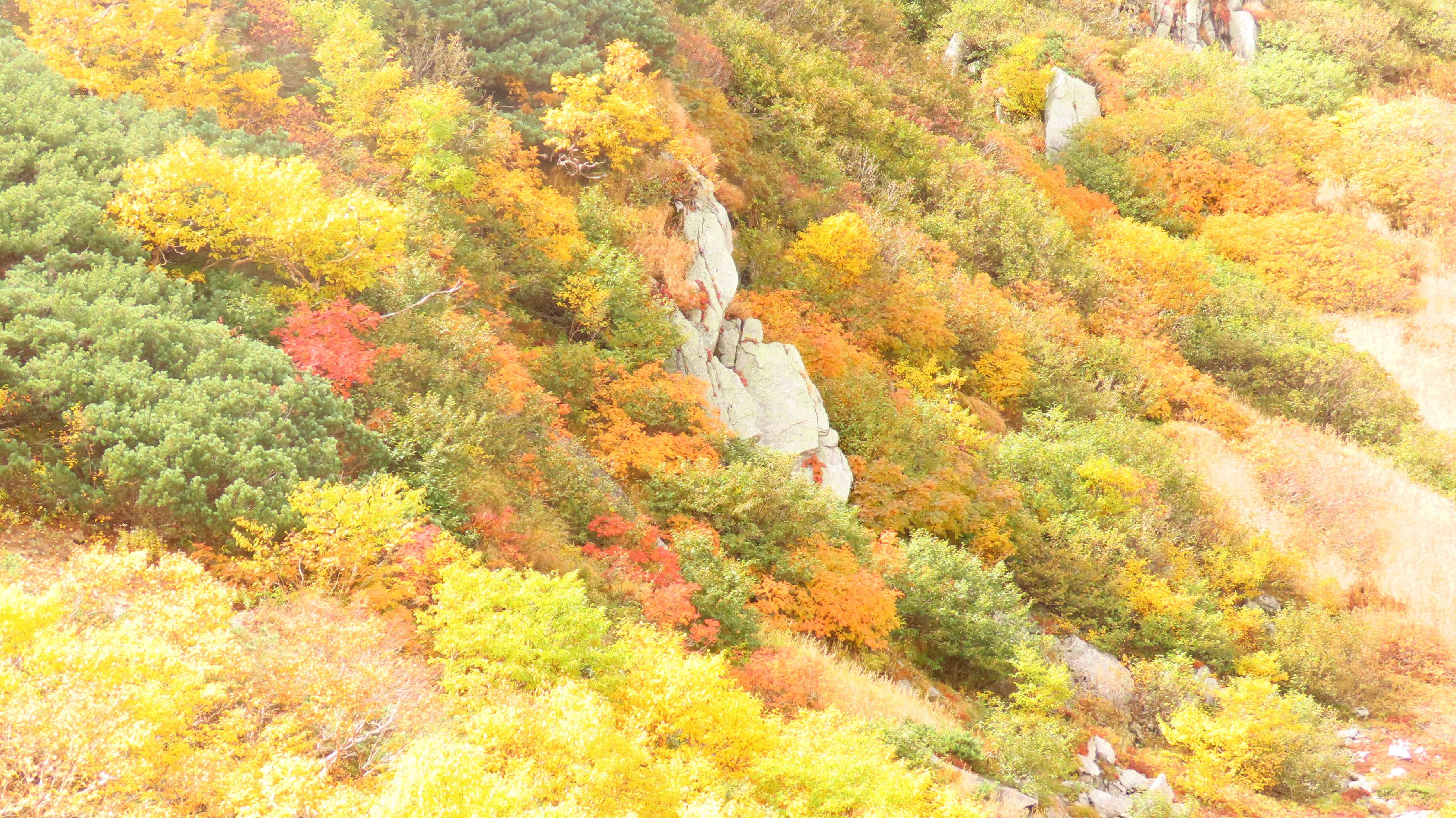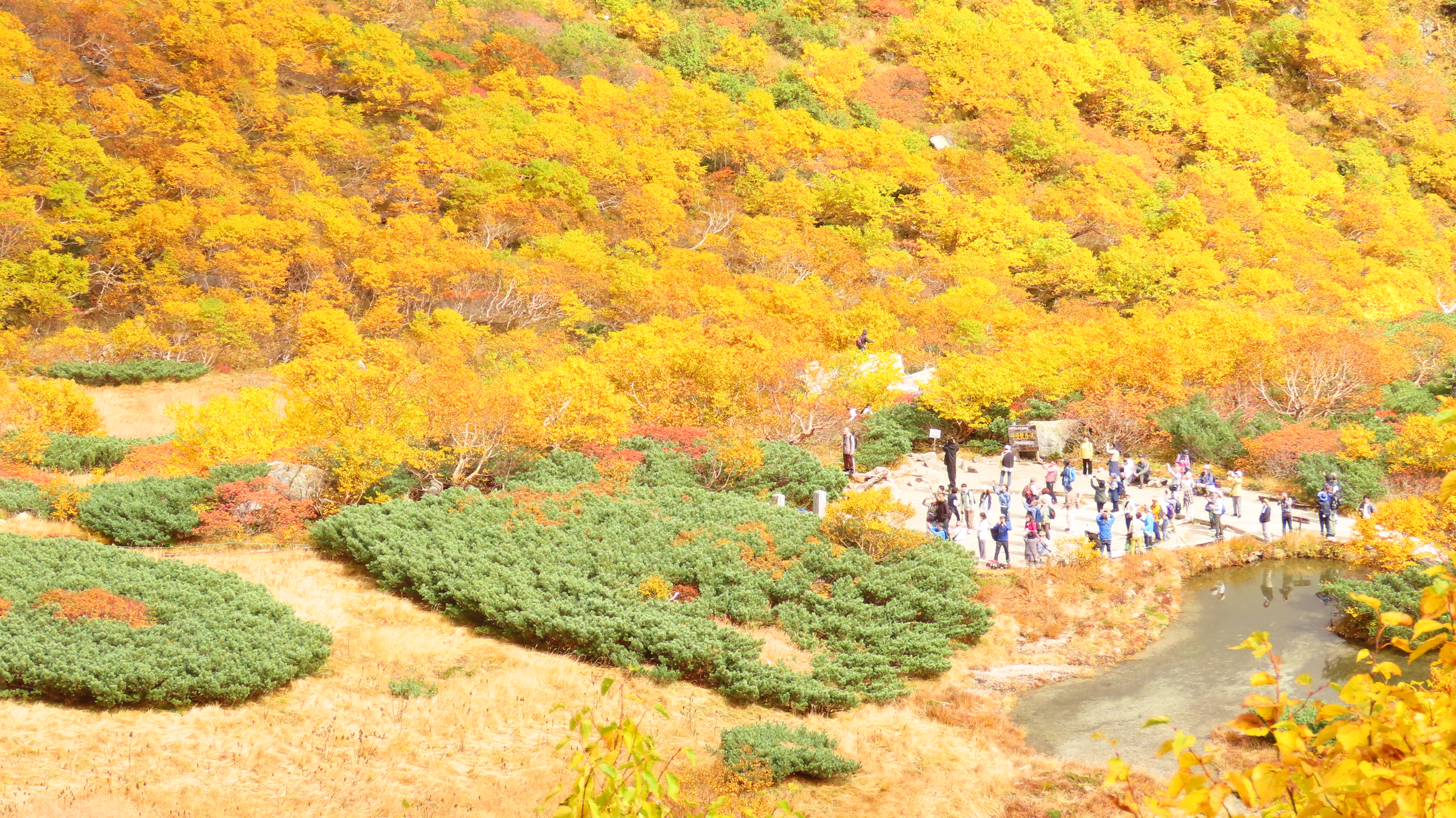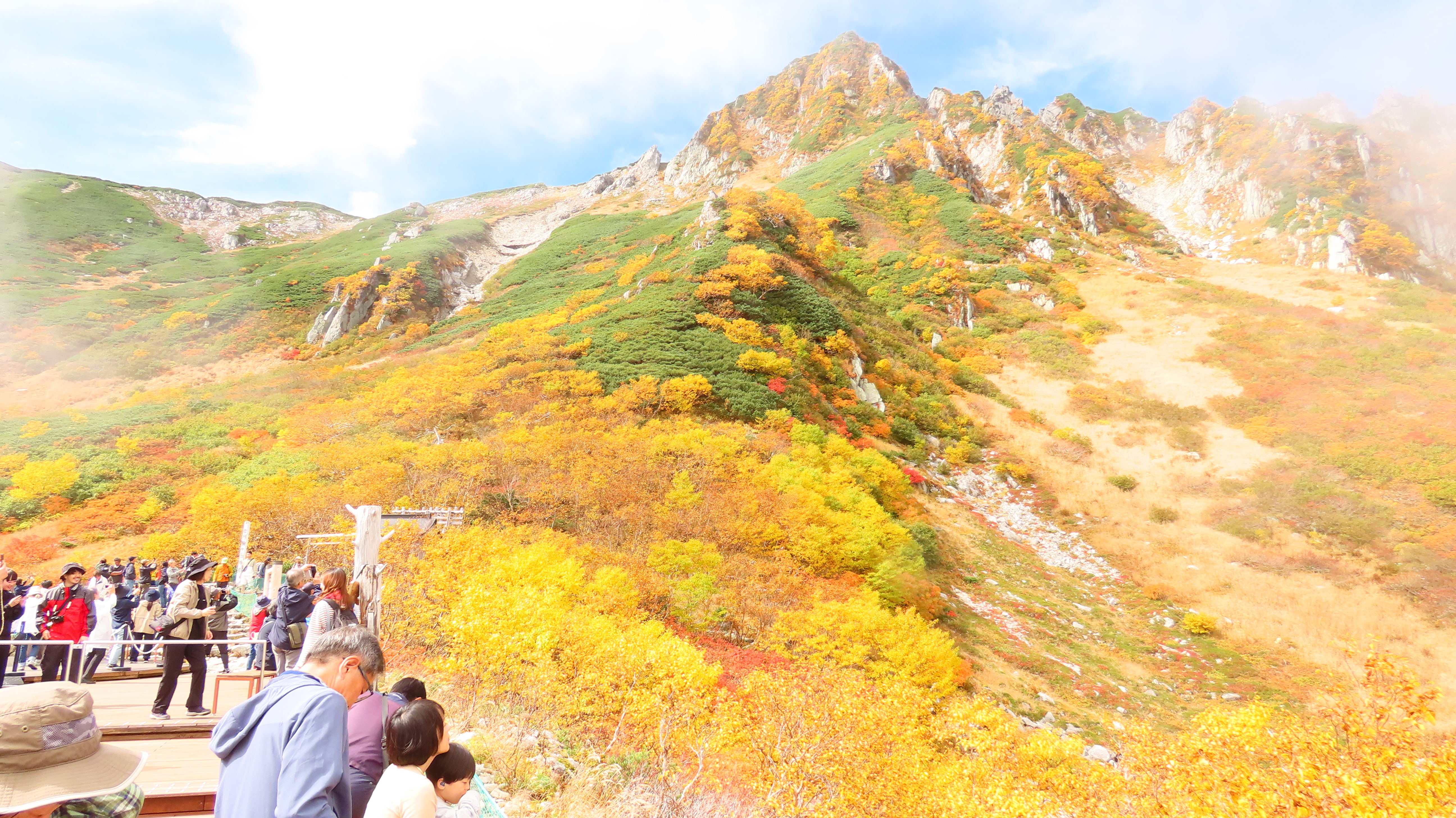 天候はガスが発生していましたが、時おりガスもきれて見事な紅葉が楽しめました