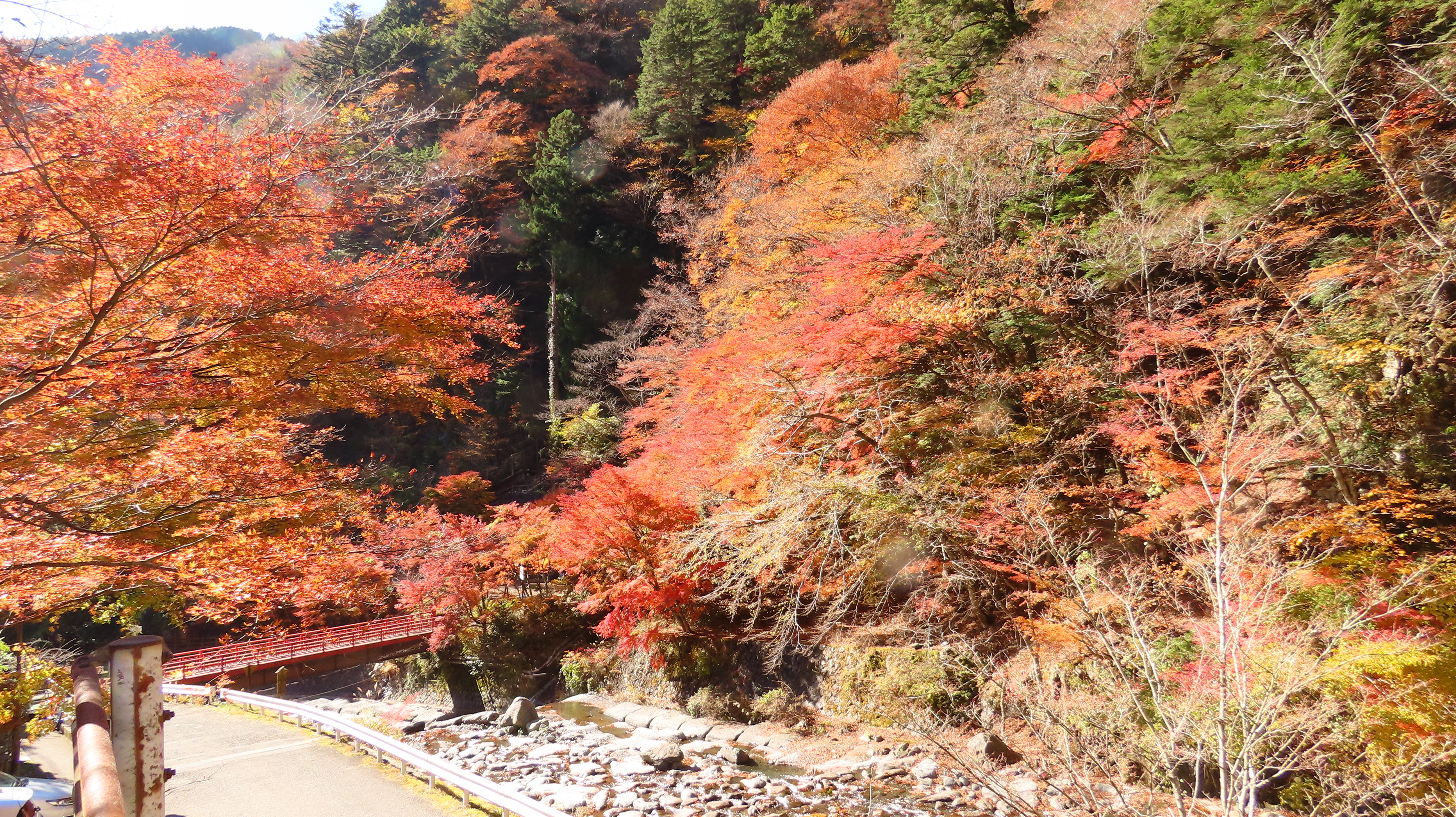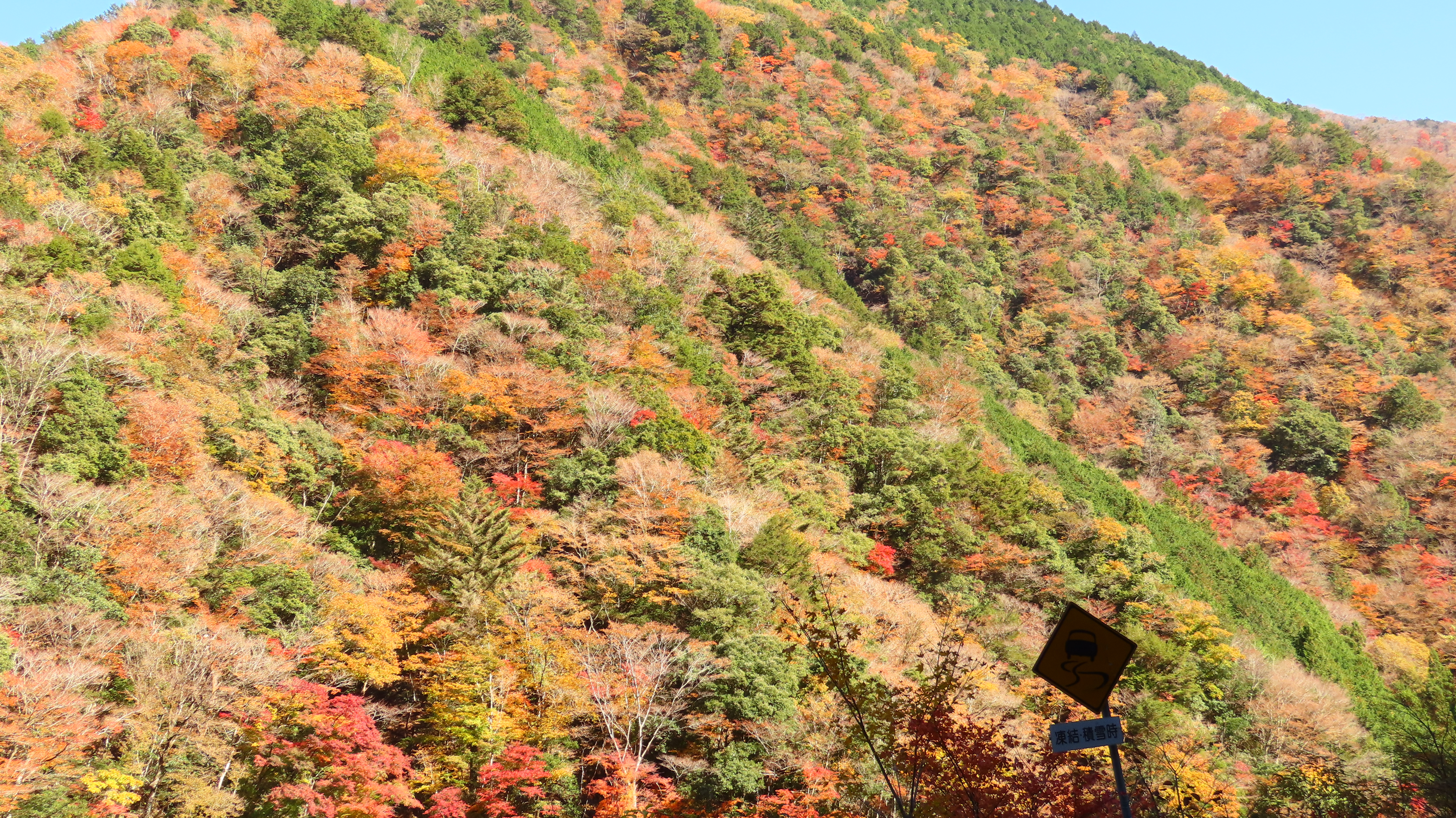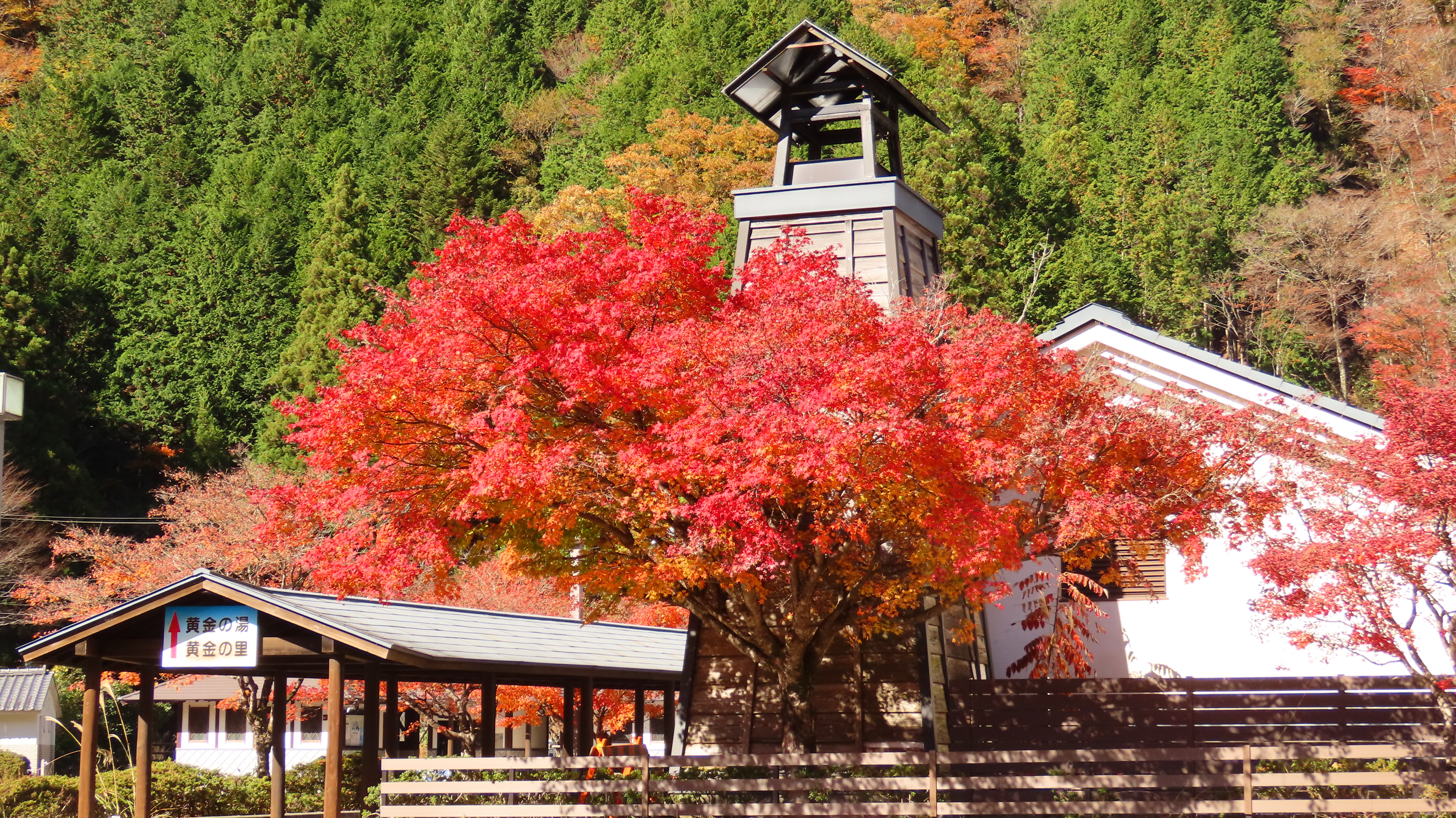 梅ヶ島温泉手前の黄金の湯周辺は紅葉真っ盛り