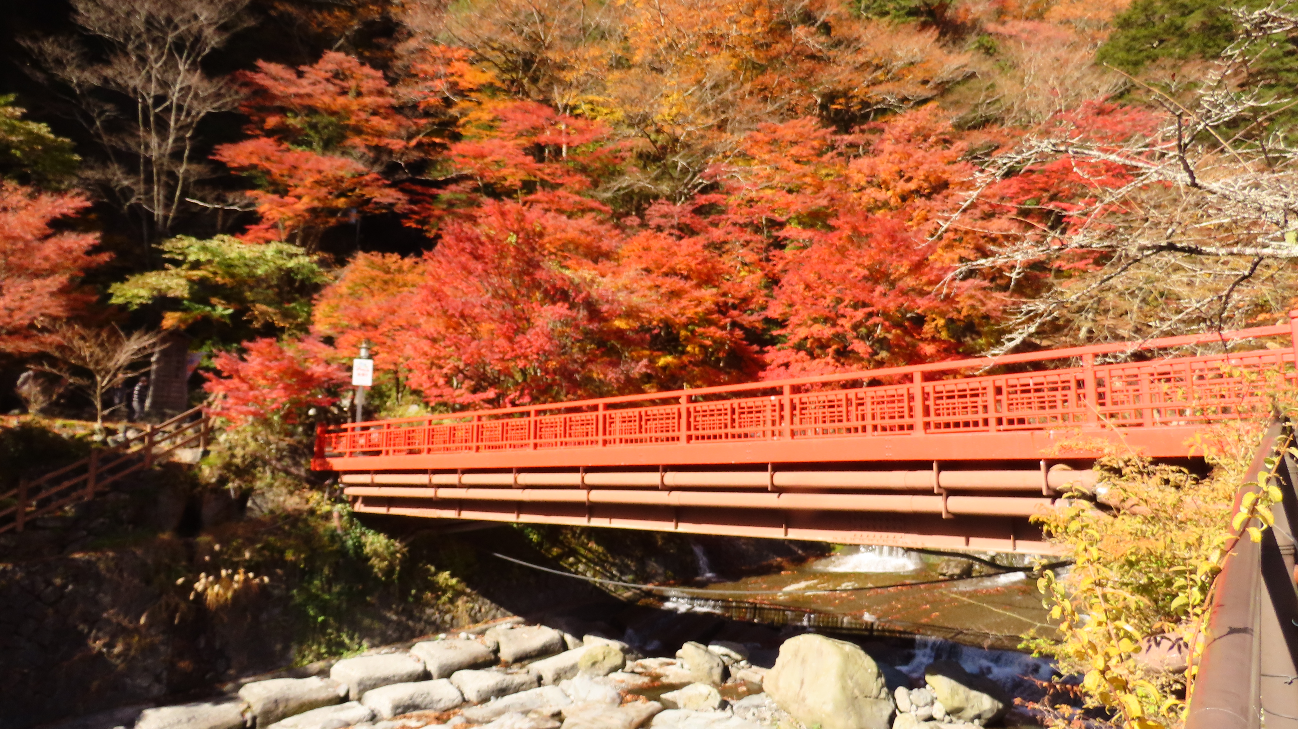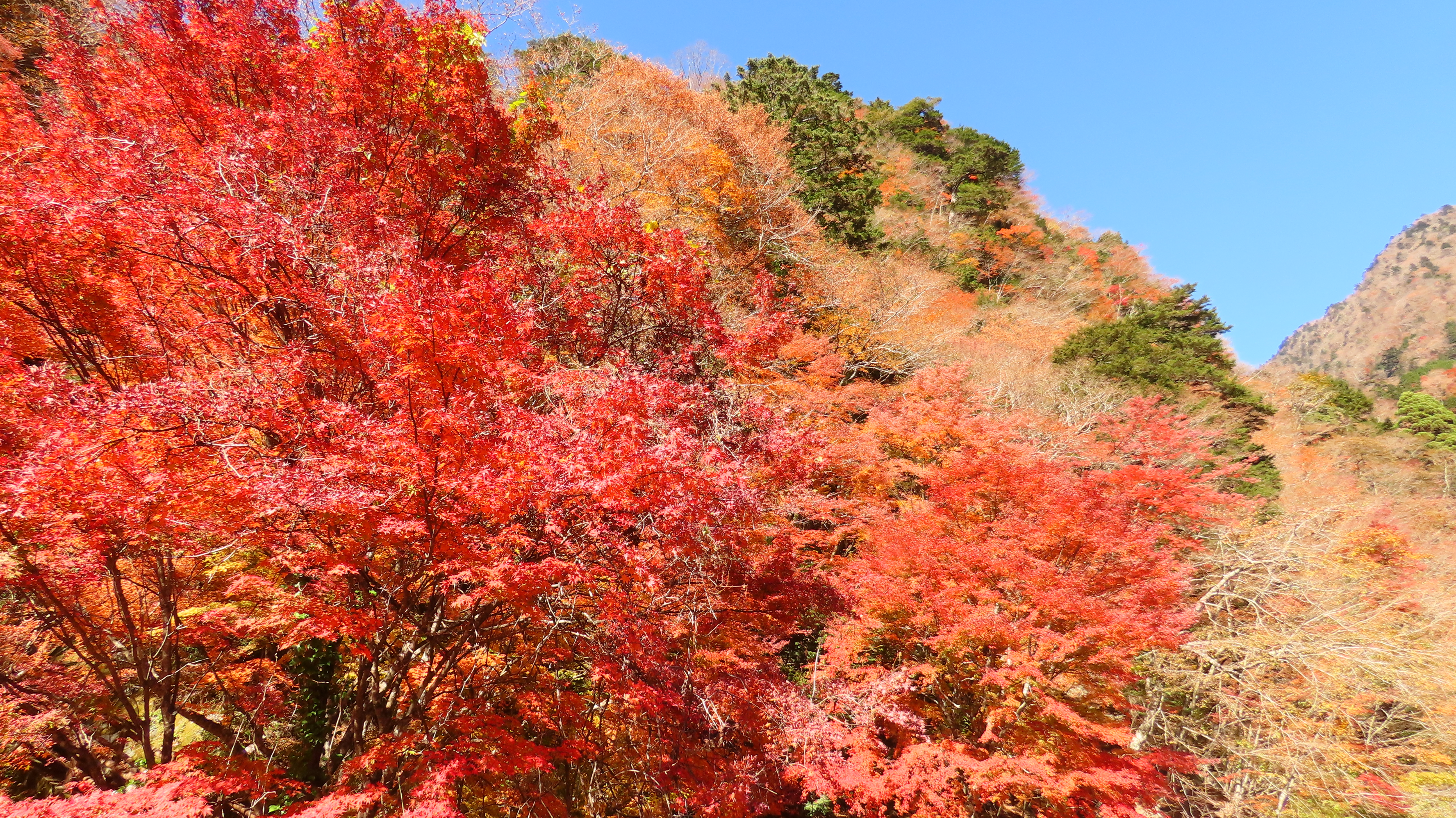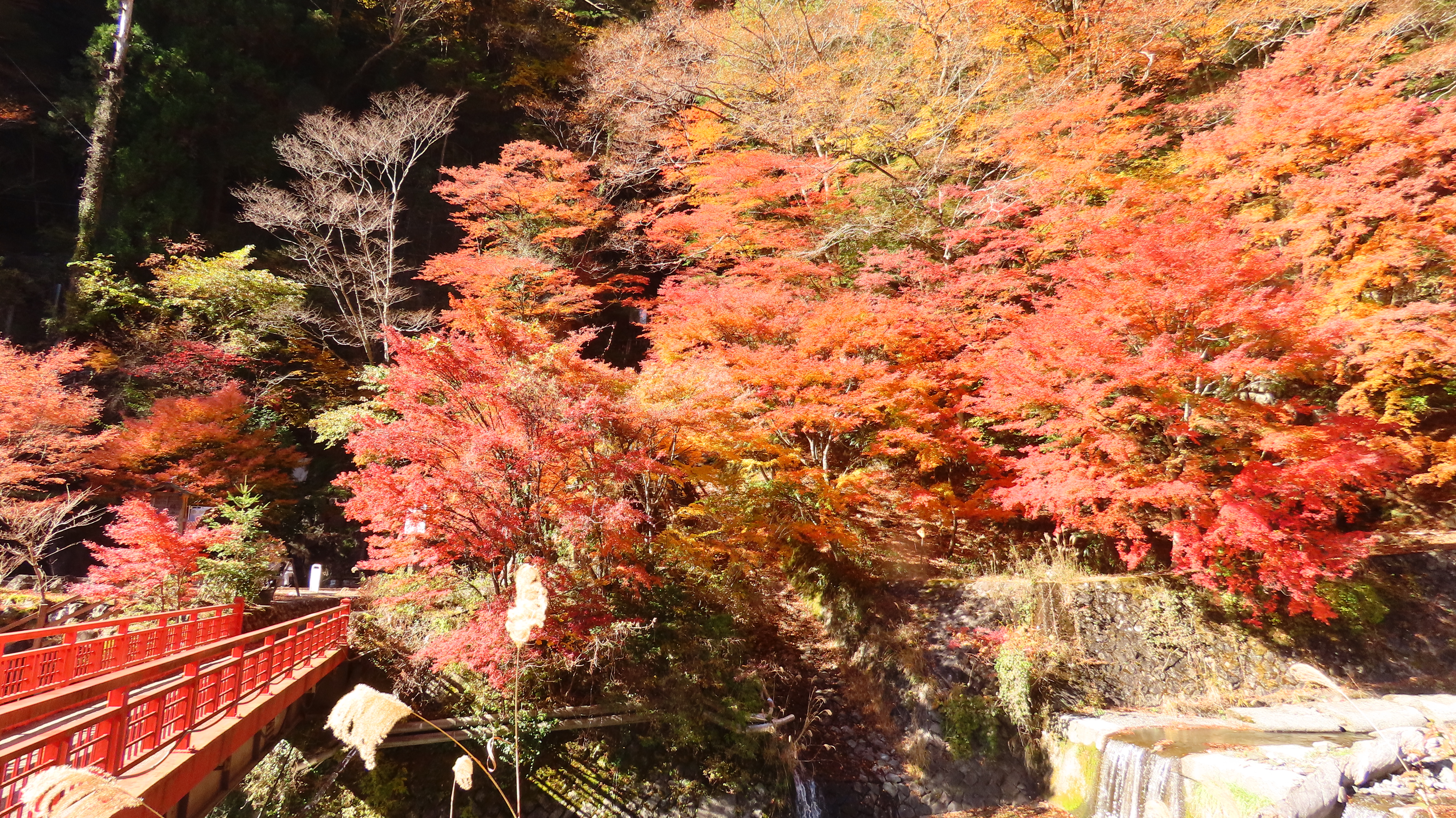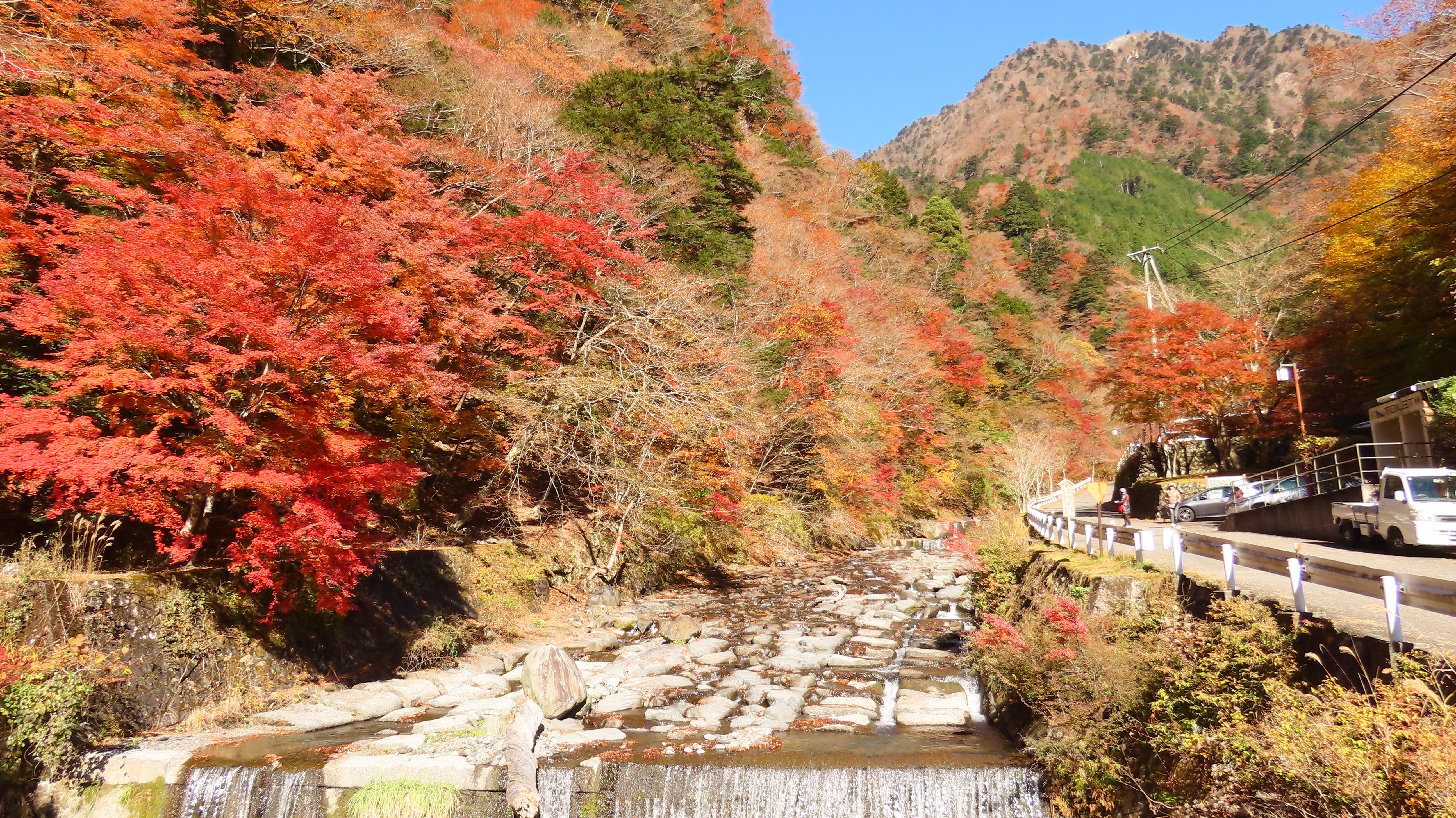 梅ヶ島温泉手前の黄金の湯周辺は紅葉真っ盛り