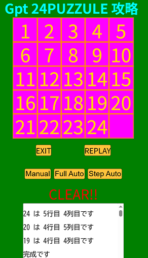 ≪パズル攻略編≫ 【移動実行】ボタンをクリックすると、勝手に数値が移動し並べていきます。